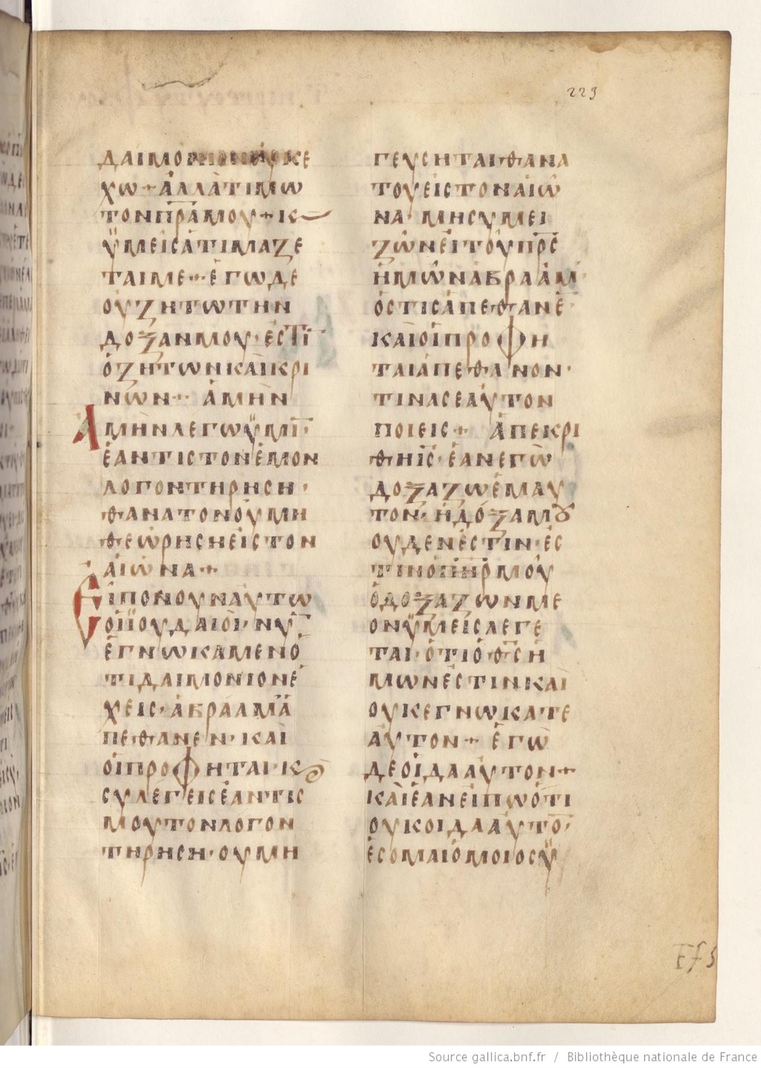 Codex Regius is an eighth-century (alt. date ninth-century) manuscript of the Gospels on parchment; 257 leaves, 2 columns, 25 lines per column. Only a selection of images are available at this time. For recent images please see the Bibliothèque Nationale.