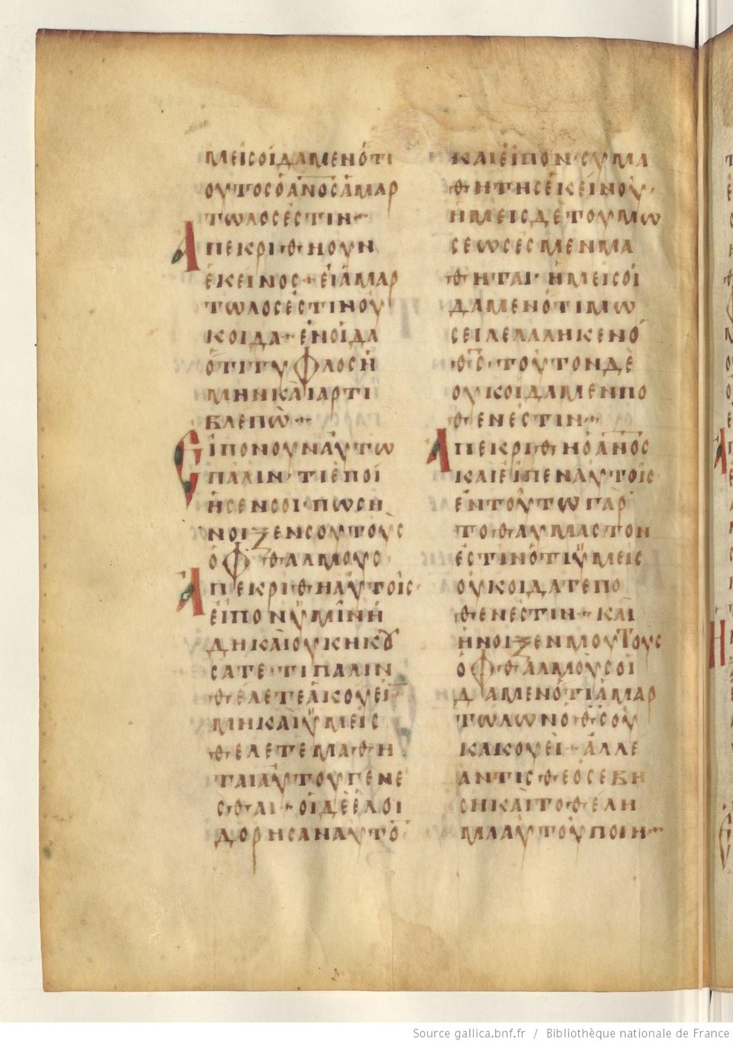 Codex Regius is an eighth-century (alt. date ninth-century) manuscript of the Gospels on parchment; 257 leaves, 2 columns, 25 lines per column. Only a selection of images are available at this time. For recent images please see the Bibliothèque Nationale.