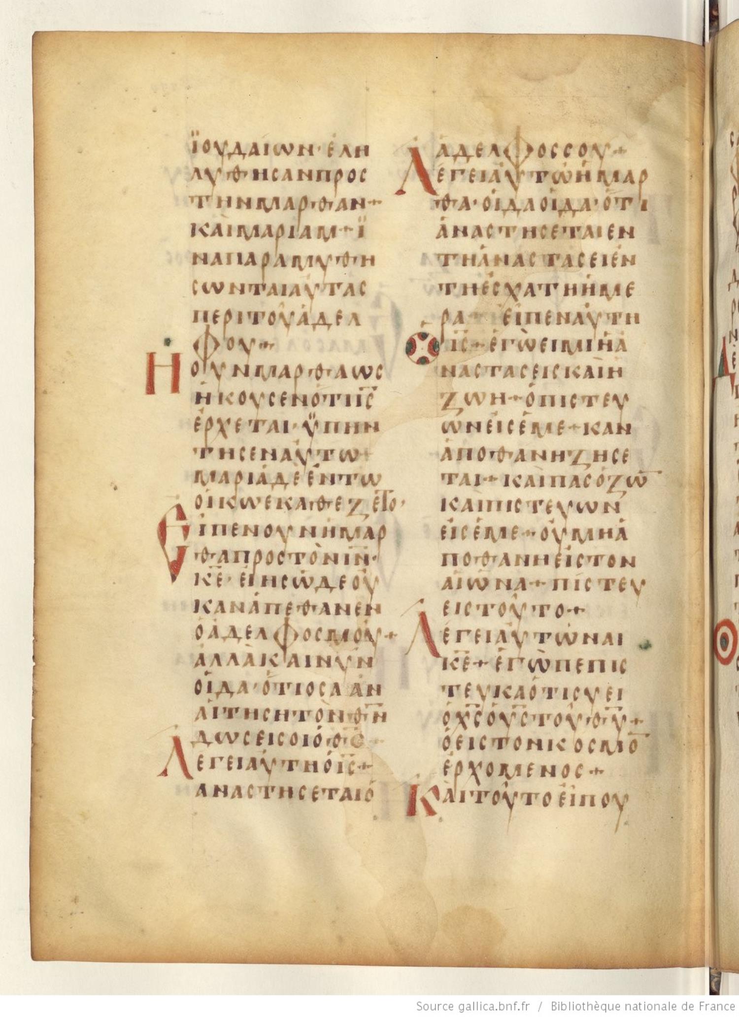 Codex Regius is an eighth-century (alt. date ninth-century) manuscript of the Gospels on parchment; 257 leaves, 2 columns, 25 lines per column. Only a selection of images are available at this time. For recent images please see the Bibliothèque Nationale.