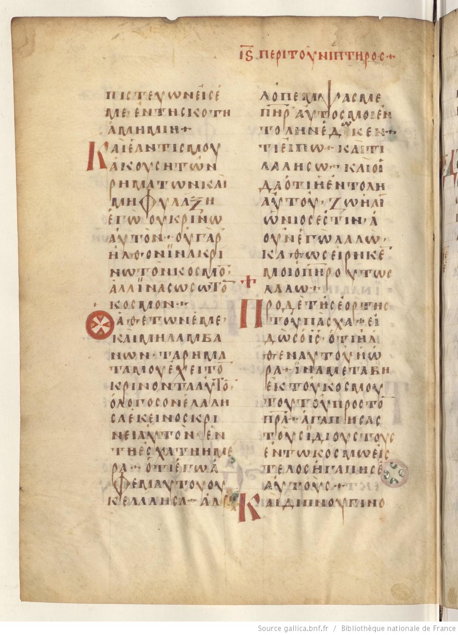 Codex Regius is an eighth-century (alt. date ninth-century) manuscript of the Gospels on parchment; 257 leaves, 2 columns, 25 lines per column. Only a selection of images are available at this time. For recent images please see the Bibliothèque Nationale.
