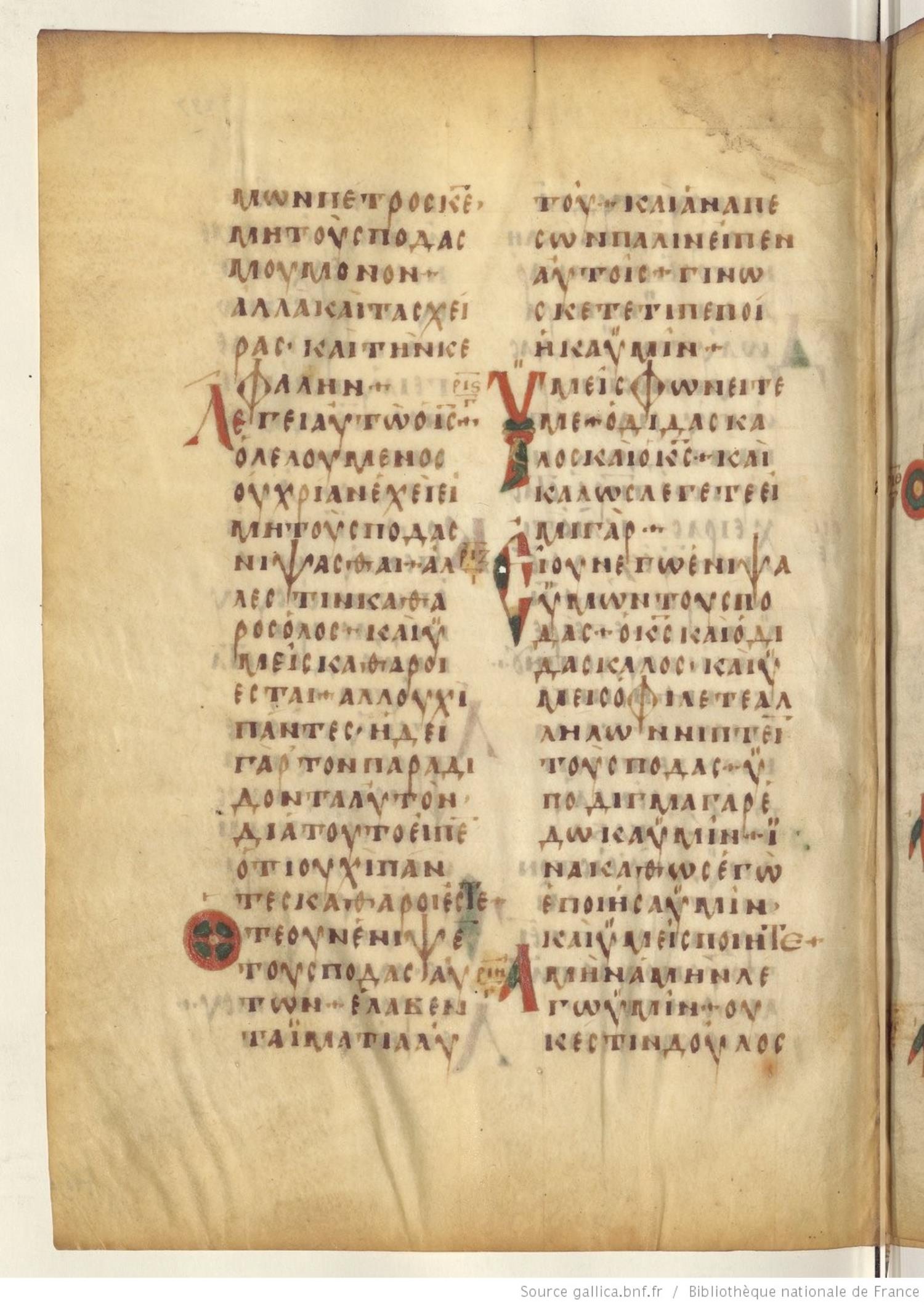 Codex Regius is an eighth-century (alt. date ninth-century) manuscript of the Gospels on parchment; 257 leaves, 2 columns, 25 lines per column. Only a selection of images are available at this time. For recent images please see the Bibliothèque Nationale.