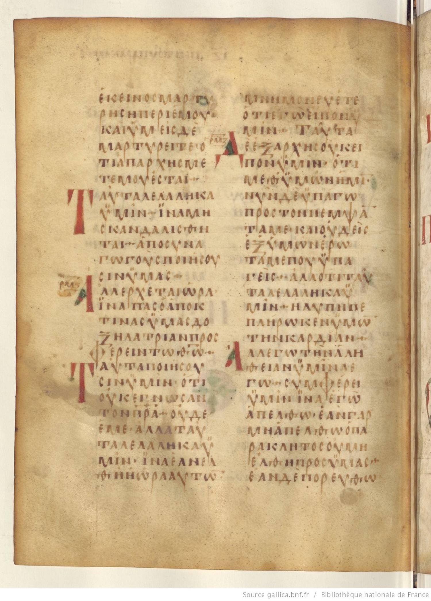 Codex Regius is an eighth-century (alt. date ninth-century) manuscript of the Gospels on parchment; 257 leaves, 2 columns, 25 lines per column. Only a selection of images are available at this time. For recent images please see the Bibliothèque Nationale.