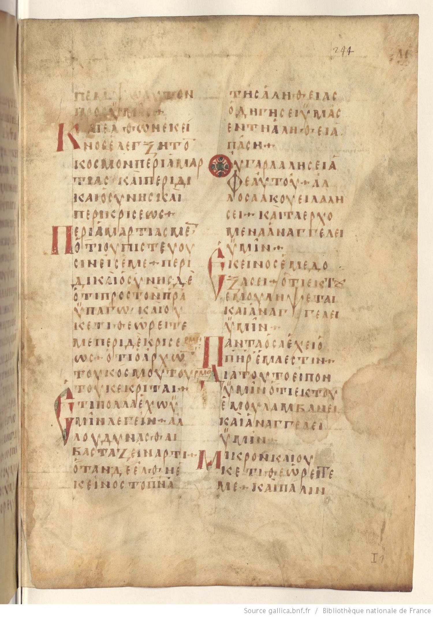 Codex Regius is an eighth-century (alt. date ninth-century) manuscript of the Gospels on parchment; 257 leaves, 2 columns, 25 lines per column. Only a selection of images are available at this time. For recent images please see the Bibliothèque Nationale.