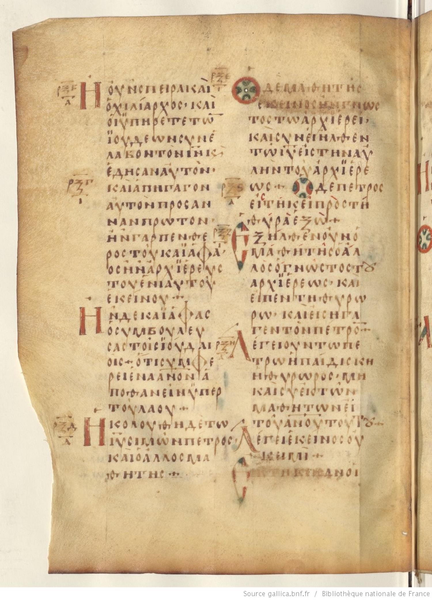 Codex Regius is an eighth-century (alt. date ninth-century) manuscript of the Gospels on parchment; 257 leaves, 2 columns, 25 lines per column. Only a selection of images are available at this time. For recent images please see the Bibliothèque Nationale.