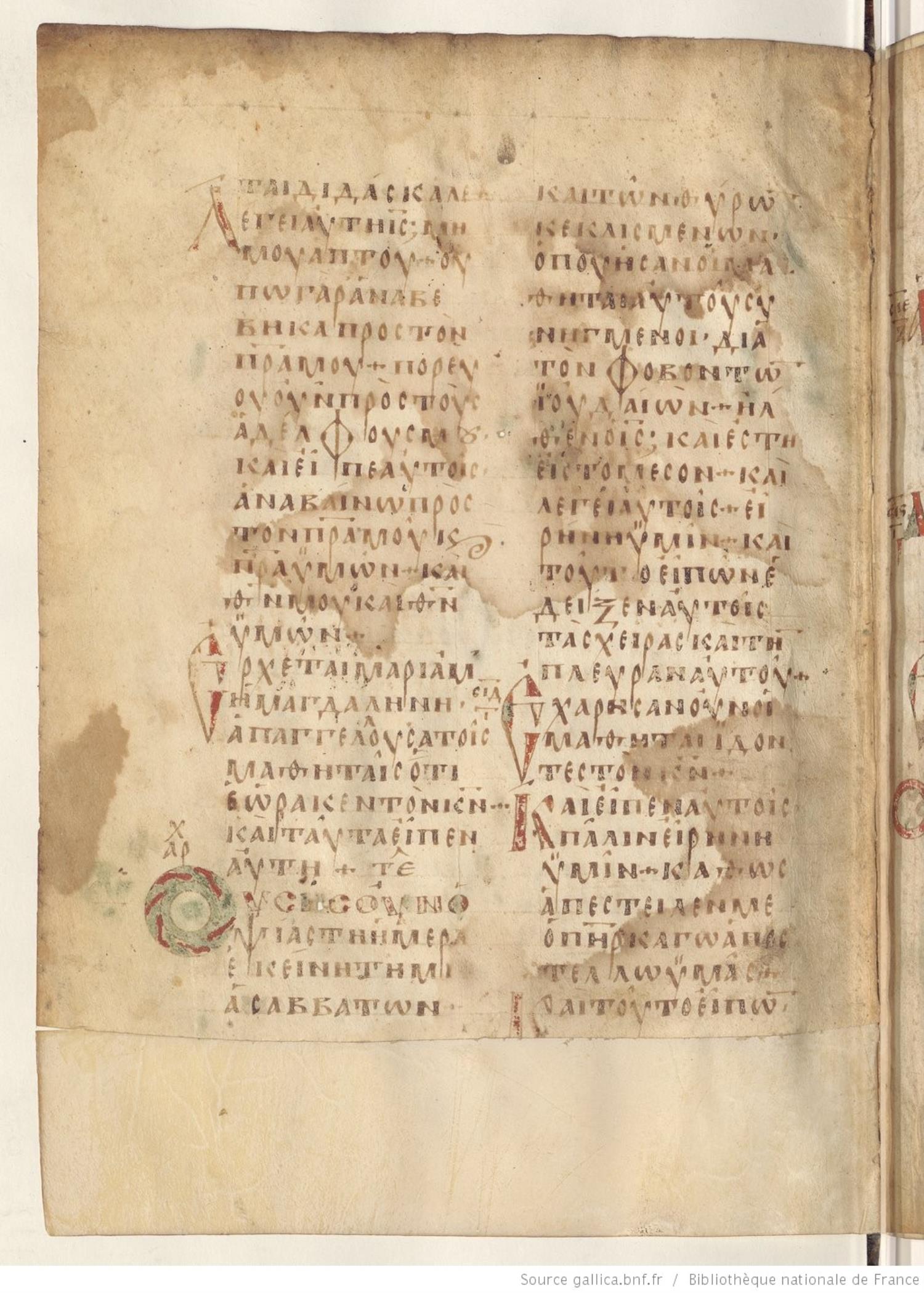 Codex Regius is an eighth-century (alt. date ninth-century) manuscript of the Gospels on parchment; 257 leaves, 2 columns, 25 lines per column. Only a selection of images are available at this time. For recent images please see the Bibliothèque Nationale.