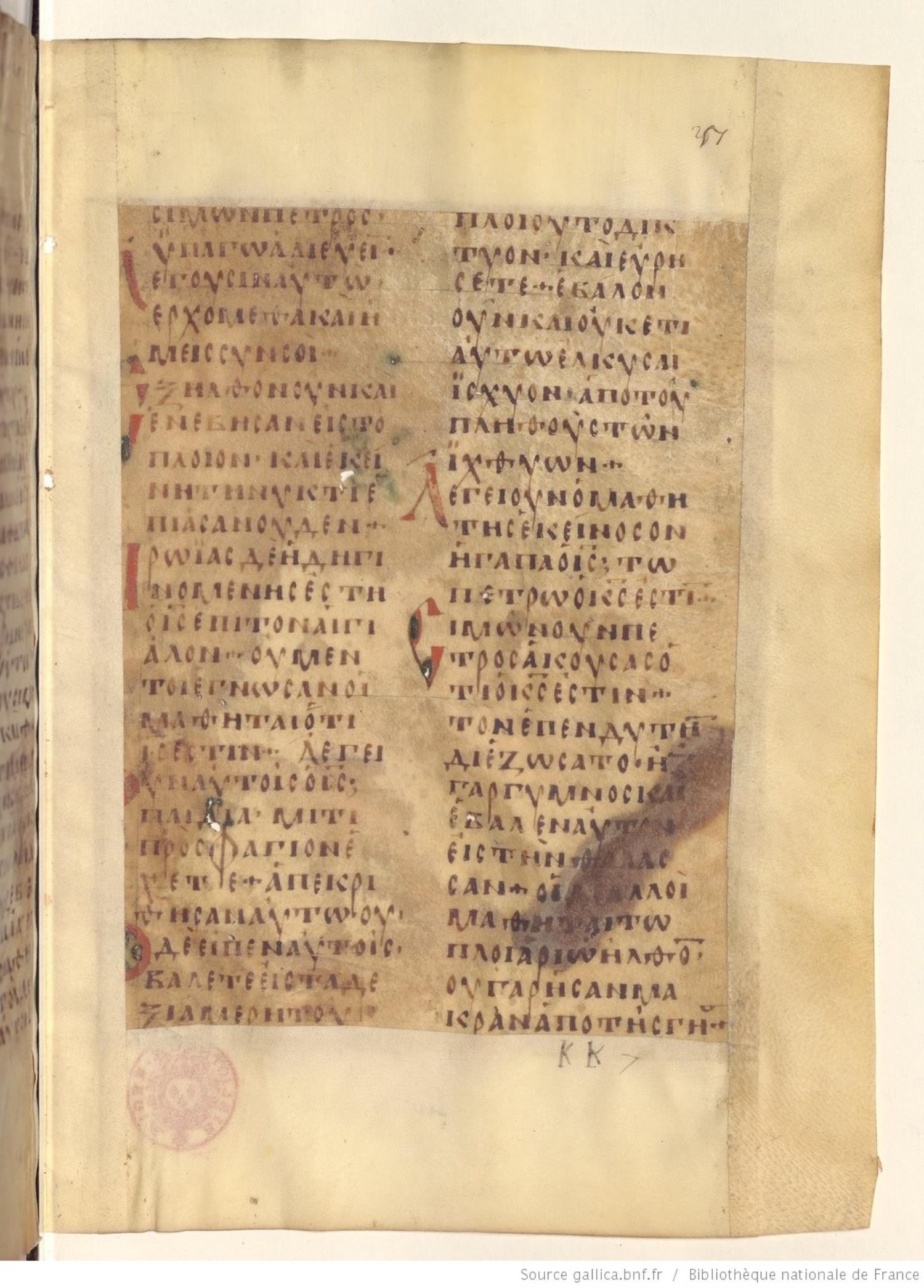 Codex Regius is an eighth-century (alt. date ninth-century) manuscript of the Gospels on parchment; 257 leaves, 2 columns, 25 lines per column. Only a selection of images are available at this time. For recent images please see the Bibliothèque Nationale.