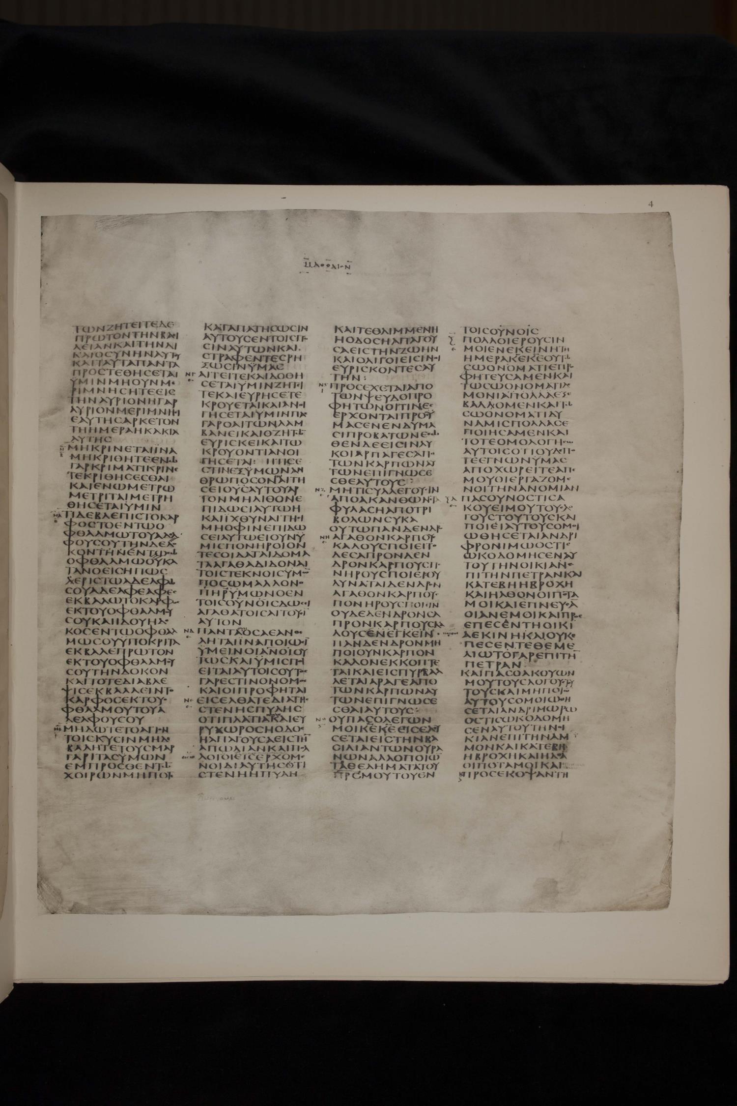 Codex Sinaiticus ? is a fourth-century manuscript of the Greek Old Testament, the New Testament, the Epistle of Barnabas, and the Shepherd of Hermas on parchment; The facsimile images are from the J. T. and Zelma Luther Archives, A. Webb Roberts Library, Southwestern Baptist Theological Seminary. For more recent digital images, please visit the Codex Sinaiticus Project