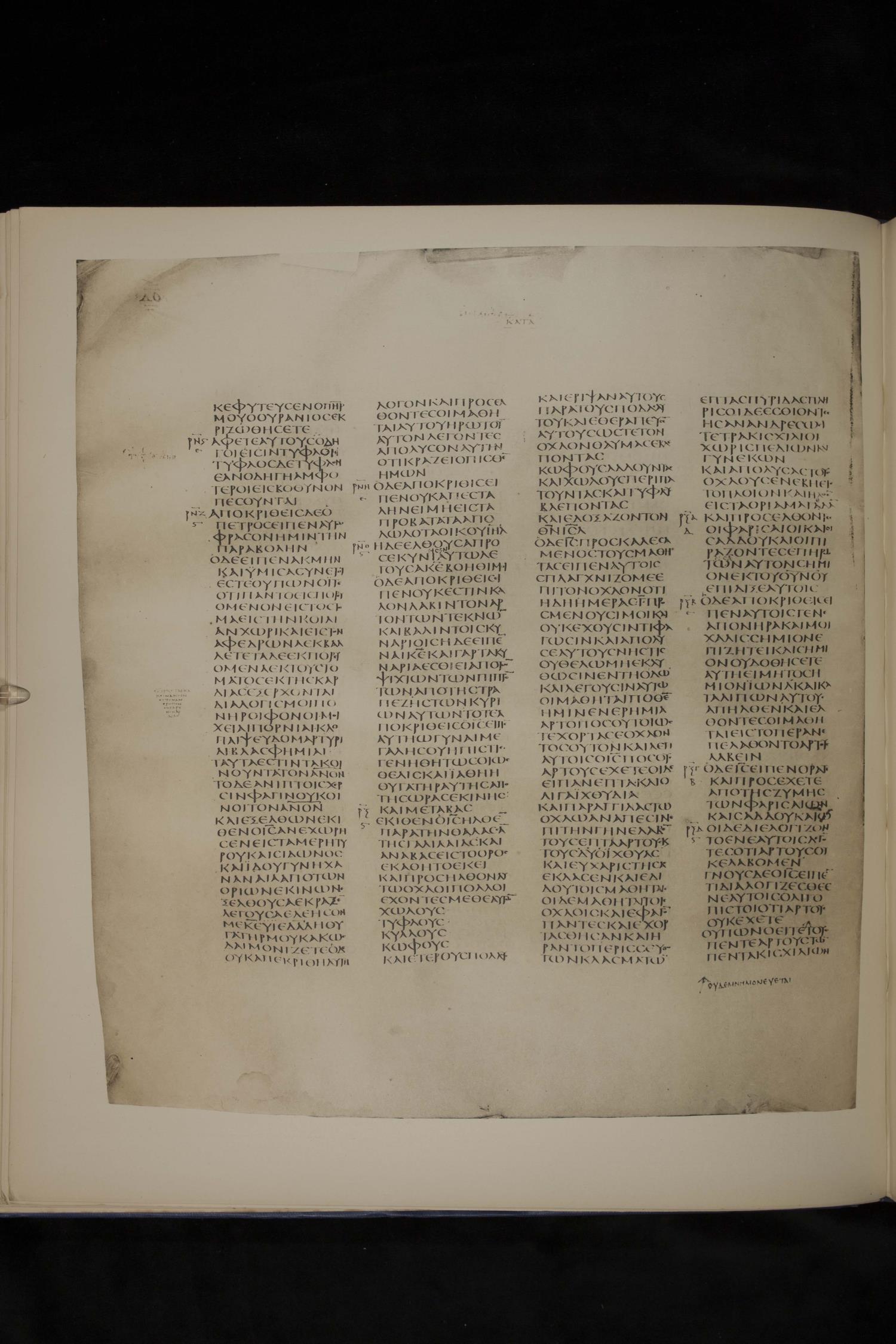Codex Sinaiticus ? is a fourth-century manuscript of the Greek Old Testament, the New Testament, the Epistle of Barnabas, and the Shepherd of Hermas on parchment; The facsimile images are from the J. T. and Zelma Luther Archives, A. Webb Roberts Library, Southwestern Baptist Theological Seminary. For more recent digital images, please visit the Codex Sinaiticus Project