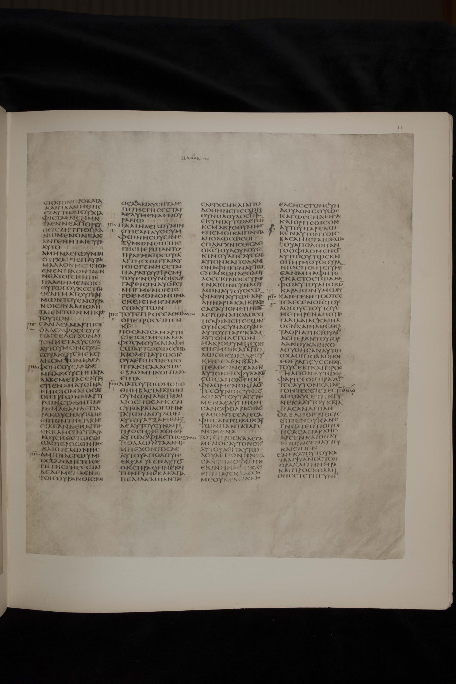 Codex Sinaiticus ? is a fourth-century manuscript of the Greek Old Testament, the New Testament, the Epistle of Barnabas, and the Shepherd of Hermas on parchment; The facsimile images are from the J. T. and Zelma Luther Archives, A. Webb Roberts Library, Southwestern Baptist Theological Seminary. For more recent digital images, please visit the Codex Sinaiticus Project