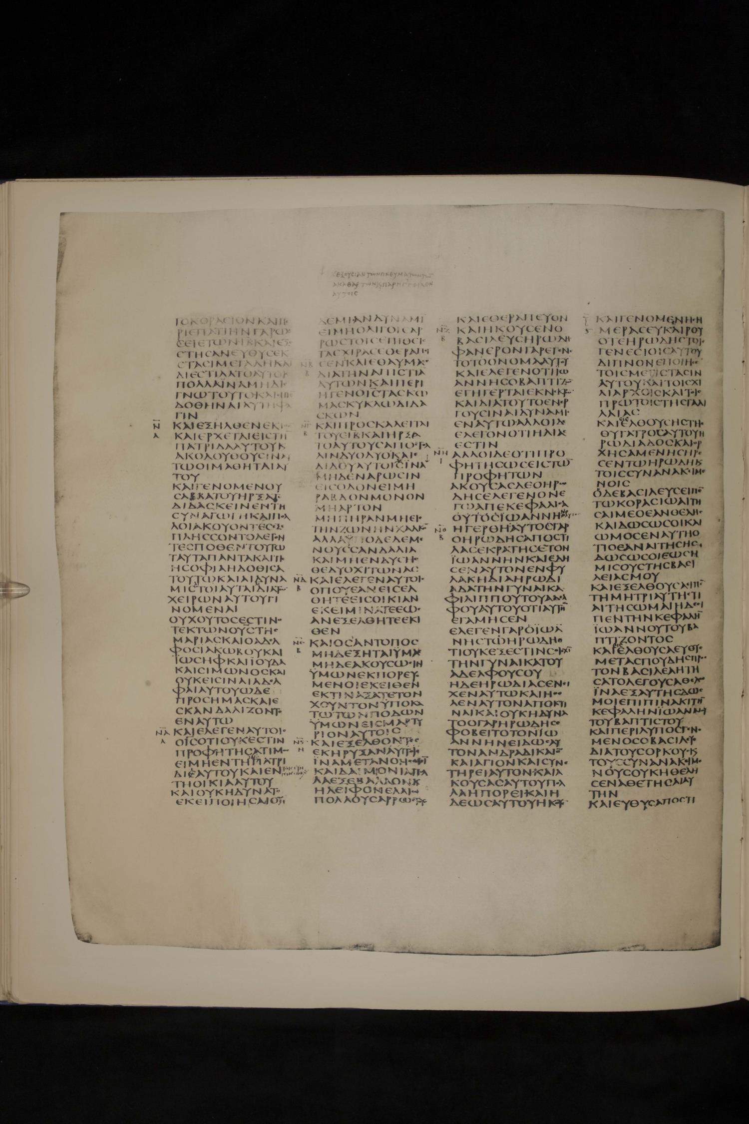 Codex Sinaiticus ? is a fourth-century manuscript of the Greek Old Testament, the New Testament, the Epistle of Barnabas, and the Shepherd of Hermas on parchment; The facsimile images are from the J. T. and Zelma Luther Archives, A. Webb Roberts Library, Southwestern Baptist Theological Seminary. For more recent digital images, please visit the Codex Sinaiticus Project