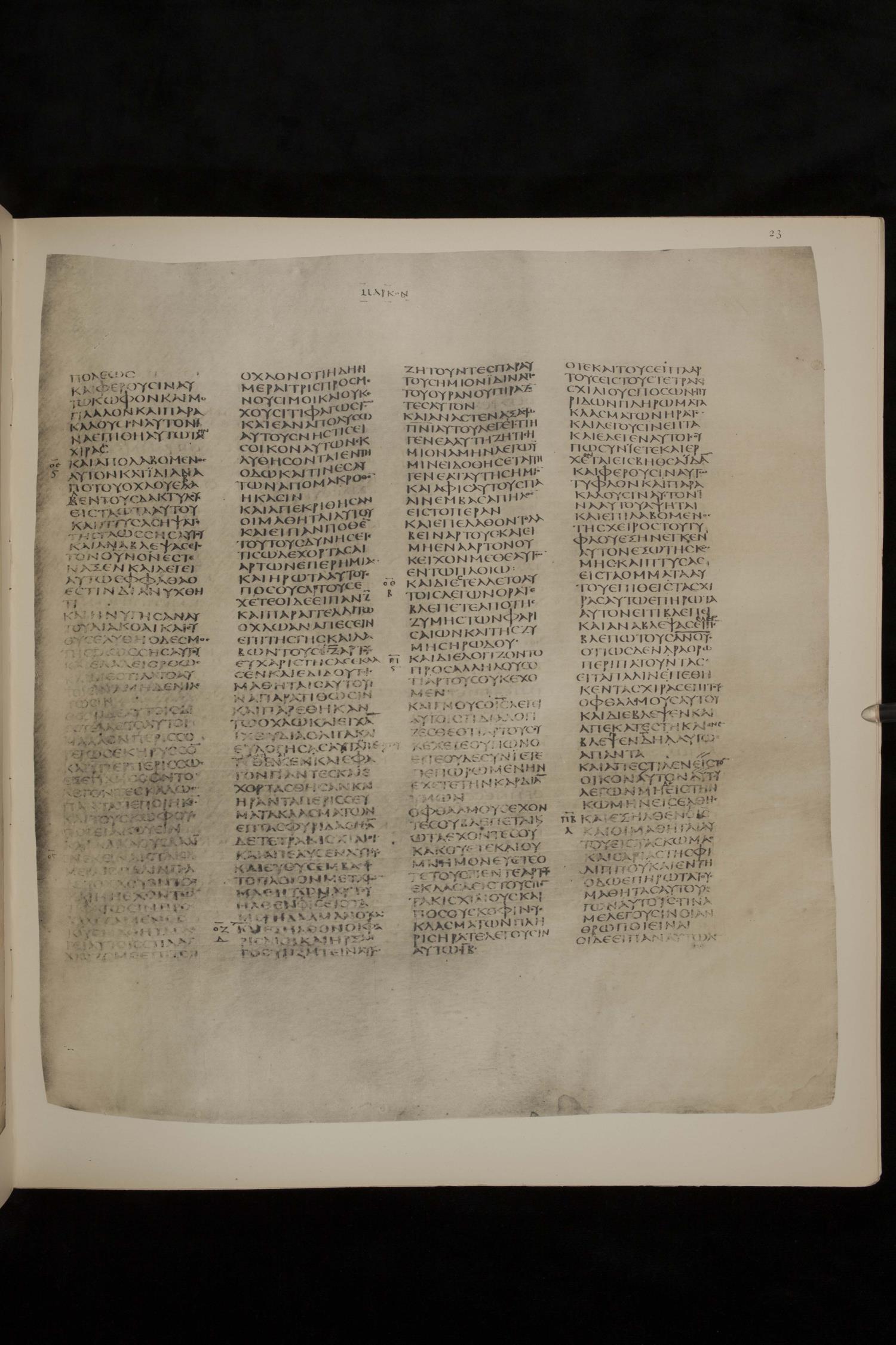 Codex Sinaiticus ? is a fourth-century manuscript of the Greek Old Testament, the New Testament, the Epistle of Barnabas, and the Shepherd of Hermas on parchment; The facsimile images are from the J. T. and Zelma Luther Archives, A. Webb Roberts Library, Southwestern Baptist Theological Seminary. For more recent digital images, please visit the Codex Sinaiticus Project