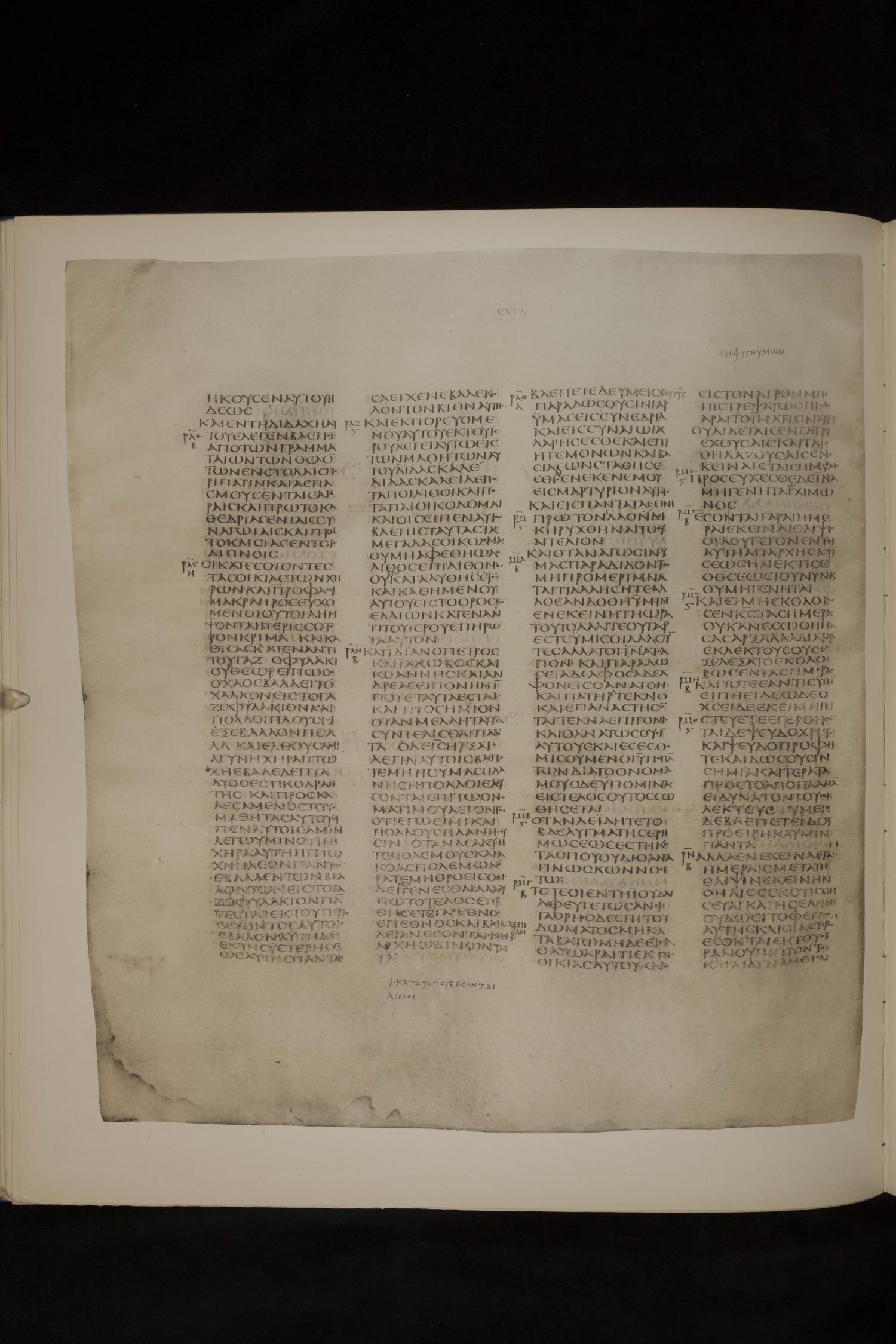 Codex Sinaiticus ? is a fourth-century manuscript of the Greek Old Testament, the New Testament, the Epistle of Barnabas, and the Shepherd of Hermas on parchment; The facsimile images are from the J. T. and Zelma Luther Archives, A. Webb Roberts Library, Southwestern Baptist Theological Seminary. For more recent digital images, please visit the Codex Sinaiticus Project