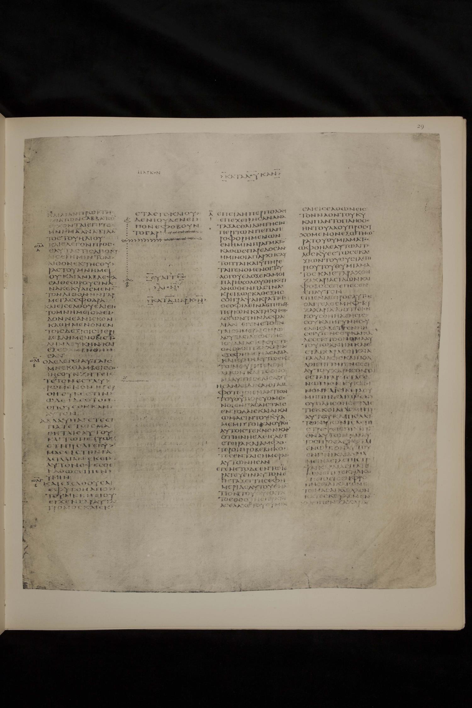Codex Sinaiticus ? is a fourth-century manuscript of the Greek Old Testament, the New Testament, the Epistle of Barnabas, and the Shepherd of Hermas on parchment; The facsimile images are from the J. T. and Zelma Luther Archives, A. Webb Roberts Library, Southwestern Baptist Theological Seminary. For more recent digital images, please visit the Codex Sinaiticus Project