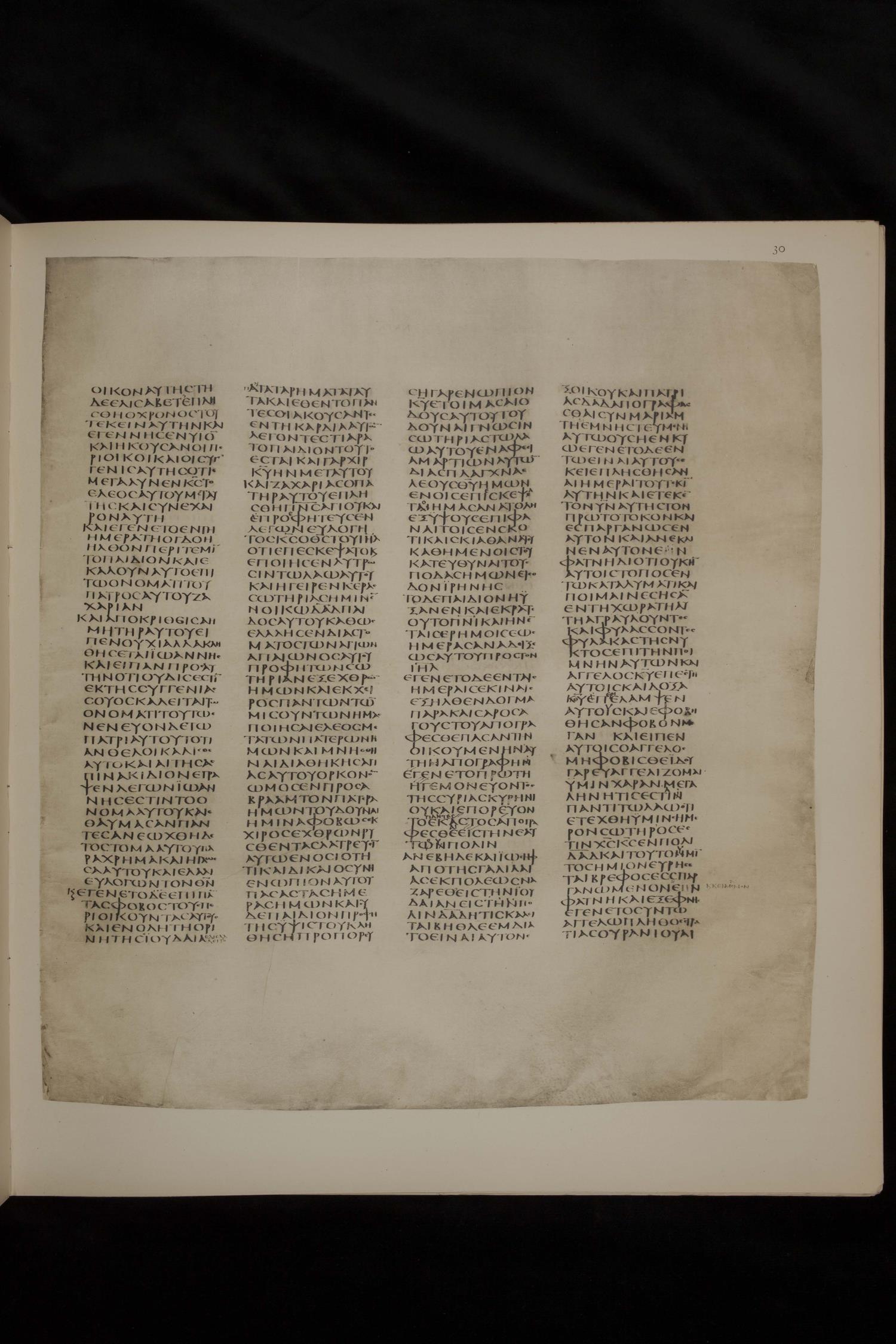 Codex Sinaiticus ? is a fourth-century manuscript of the Greek Old Testament, the New Testament, the Epistle of Barnabas, and the Shepherd of Hermas on parchment; The facsimile images are from the J. T. and Zelma Luther Archives, A. Webb Roberts Library, Southwestern Baptist Theological Seminary. For more recent digital images, please visit the Codex Sinaiticus Project