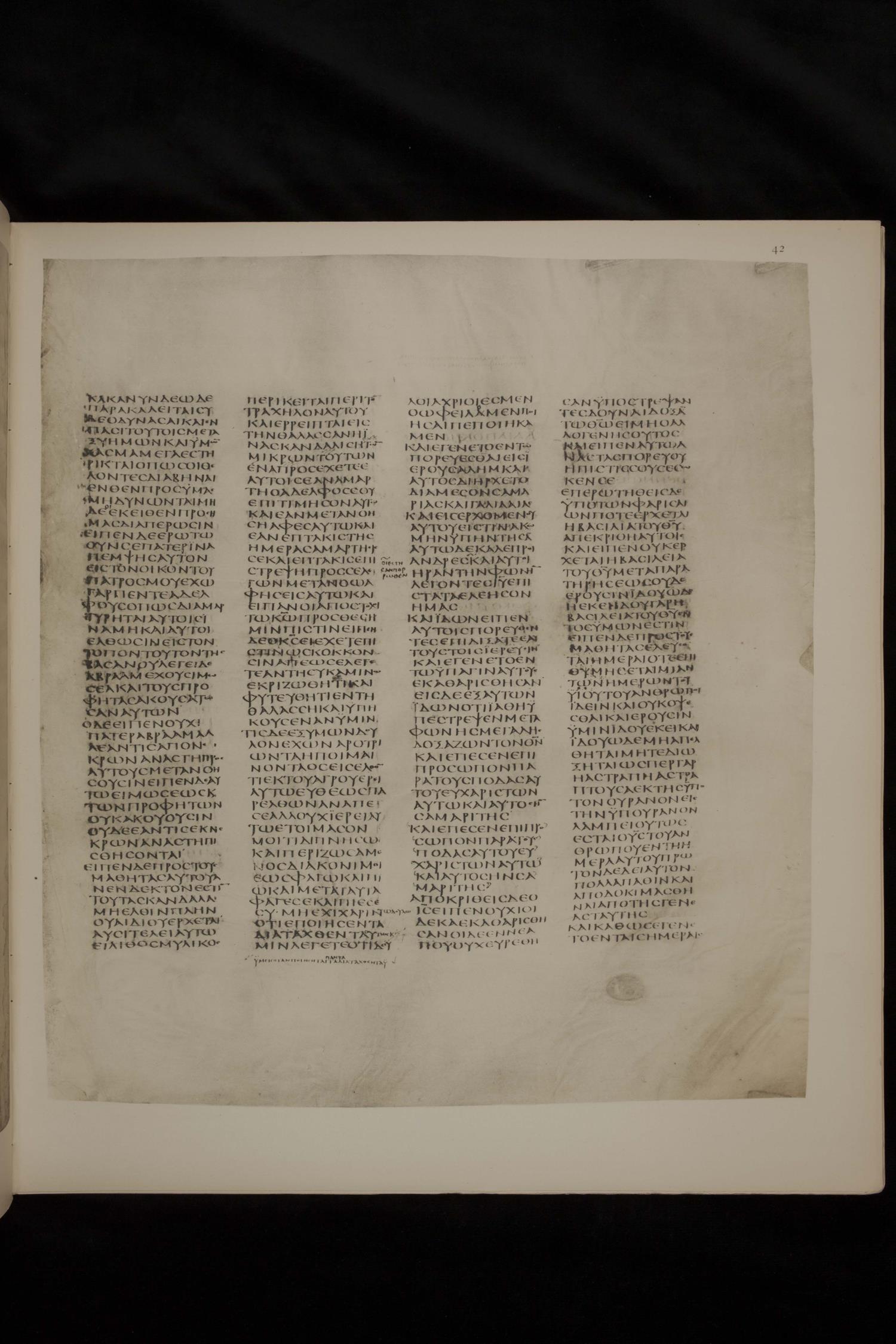 Codex Sinaiticus ? is a fourth-century manuscript of the Greek Old Testament, the New Testament, the Epistle of Barnabas, and the Shepherd of Hermas on parchment; The facsimile images are from the J. T. and Zelma Luther Archives, A. Webb Roberts Library, Southwestern Baptist Theological Seminary. For more recent digital images, please visit the Codex Sinaiticus Project