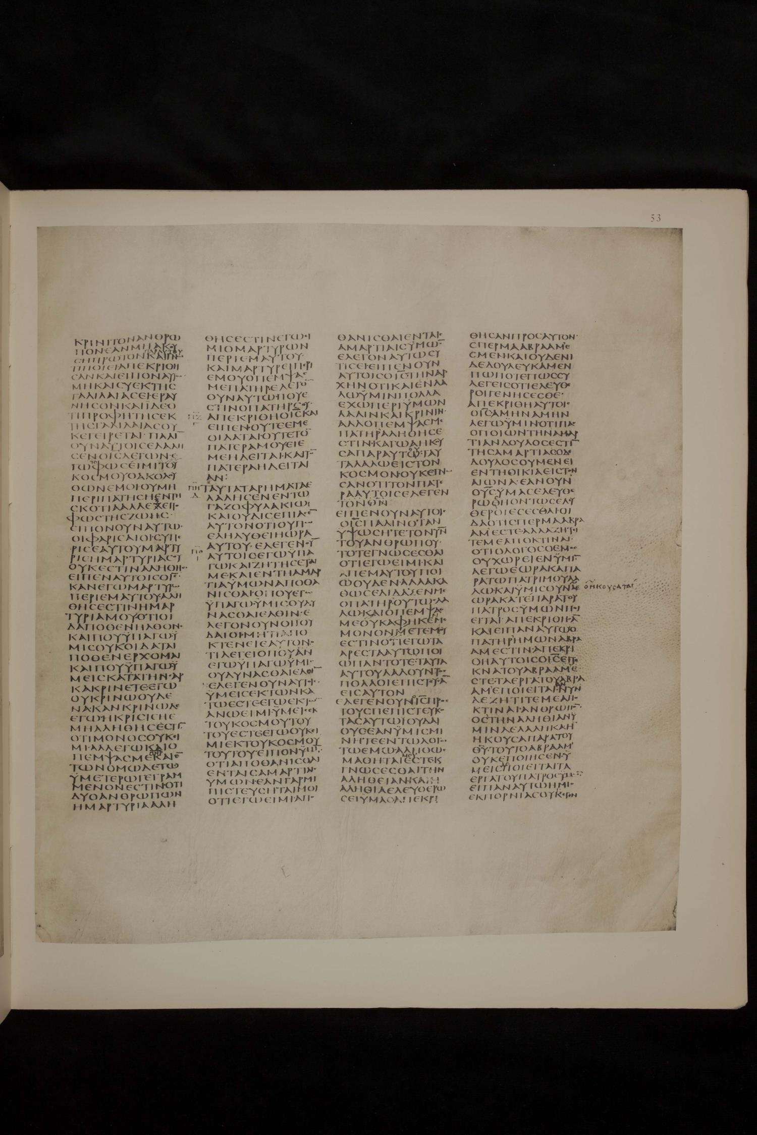Codex Sinaiticus ? is a fourth-century manuscript of the Greek Old Testament, the New Testament, the Epistle of Barnabas, and the Shepherd of Hermas on parchment; The facsimile images are from the J. T. and Zelma Luther Archives, A. Webb Roberts Library, Southwestern Baptist Theological Seminary. For more recent digital images, please visit the Codex Sinaiticus Project