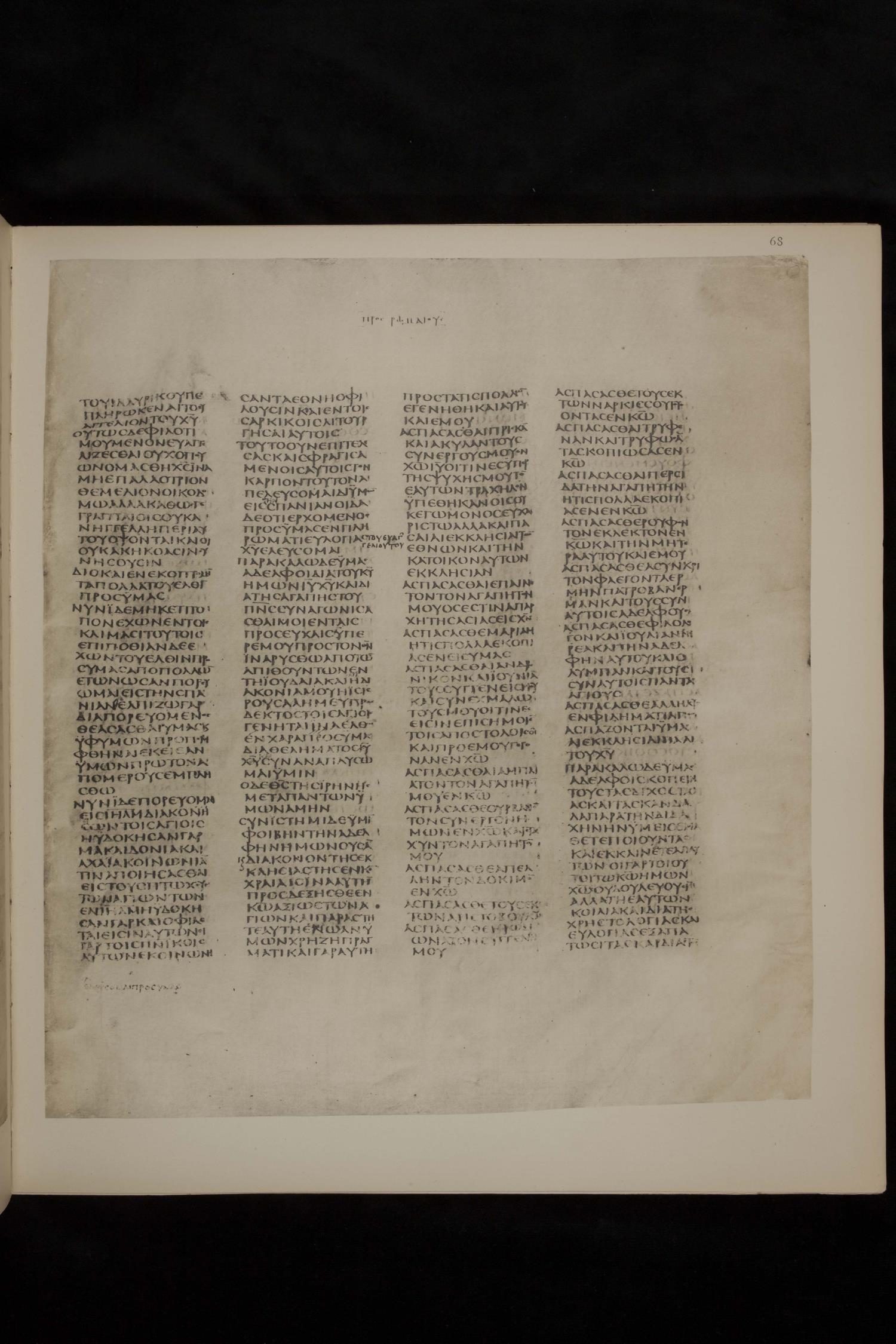 Codex Sinaiticus ? is a fourth-century manuscript of the Greek Old Testament, the New Testament, the Epistle of Barnabas, and the Shepherd of Hermas on parchment; The facsimile images are from the J. T. and Zelma Luther Archives, A. Webb Roberts Library, Southwestern Baptist Theological Seminary. For more recent digital images, please visit the Codex Sinaiticus Project