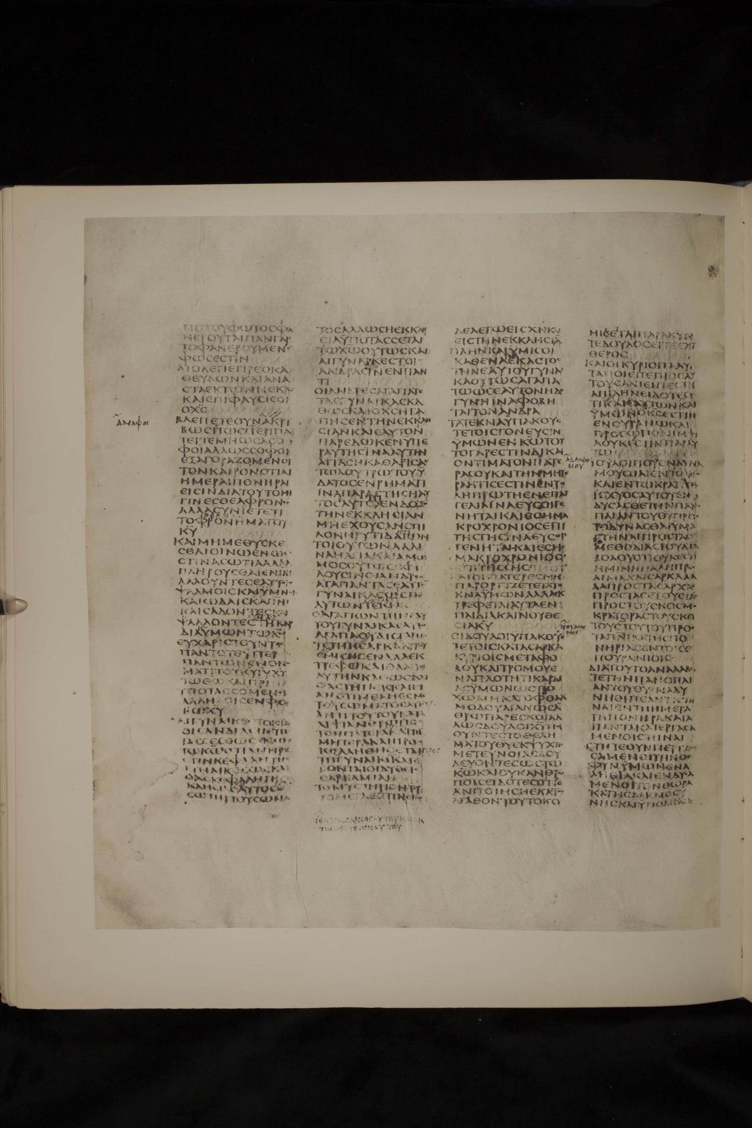 Codex Sinaiticus ? is a fourth-century manuscript of the Greek Old Testament, the New Testament, the Epistle of Barnabas, and the Shepherd of Hermas on parchment; The facsimile images are from the J. T. and Zelma Luther Archives, A. Webb Roberts Library, Southwestern Baptist Theological Seminary. For more recent digital images, please visit the Codex Sinaiticus Project