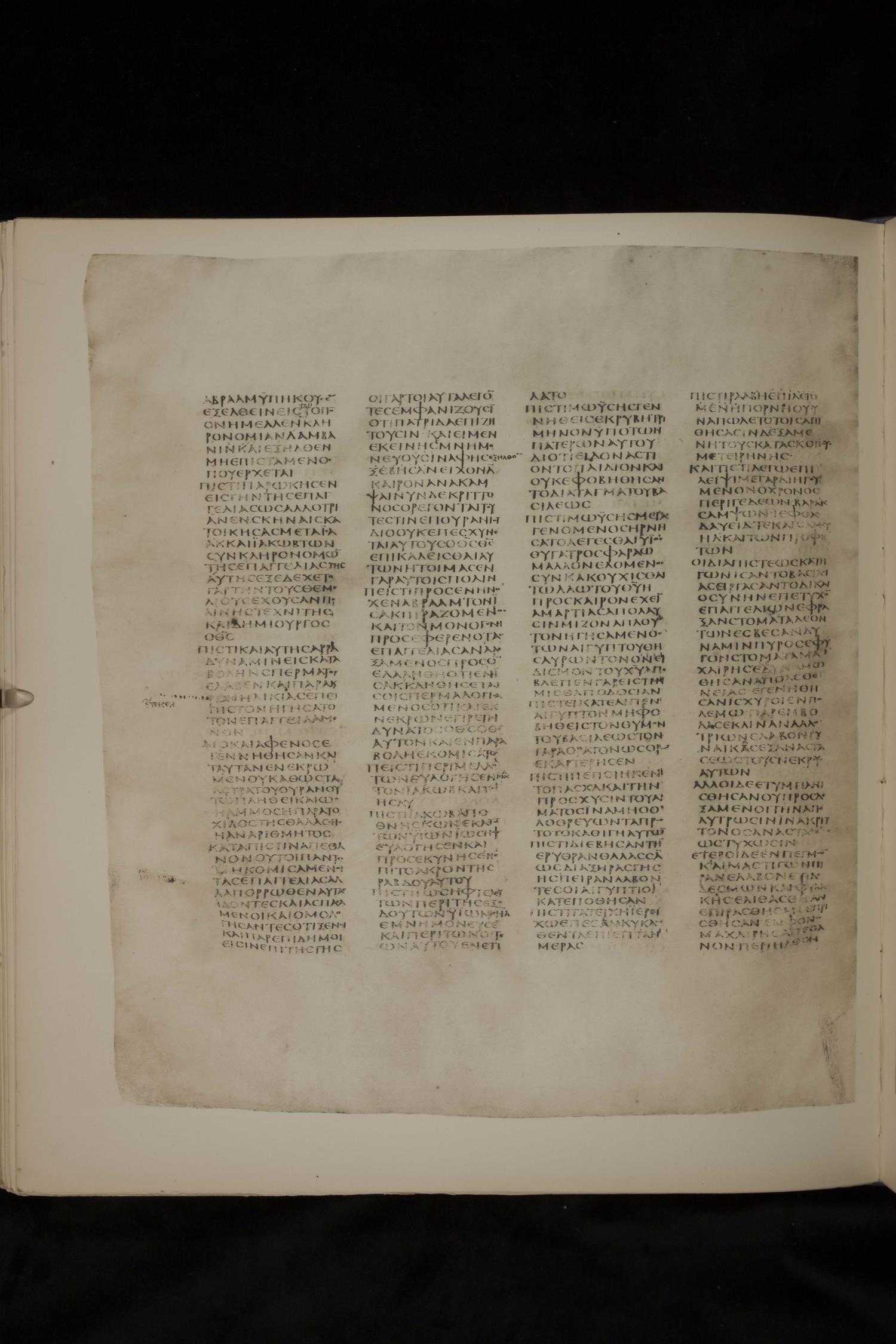 Codex Sinaiticus ? is a fourth-century manuscript of the Greek Old Testament, the New Testament, the Epistle of Barnabas, and the Shepherd of Hermas on parchment; The facsimile images are from the J. T. and Zelma Luther Archives, A. Webb Roberts Library, Southwestern Baptist Theological Seminary. For more recent digital images, please visit the Codex Sinaiticus Project