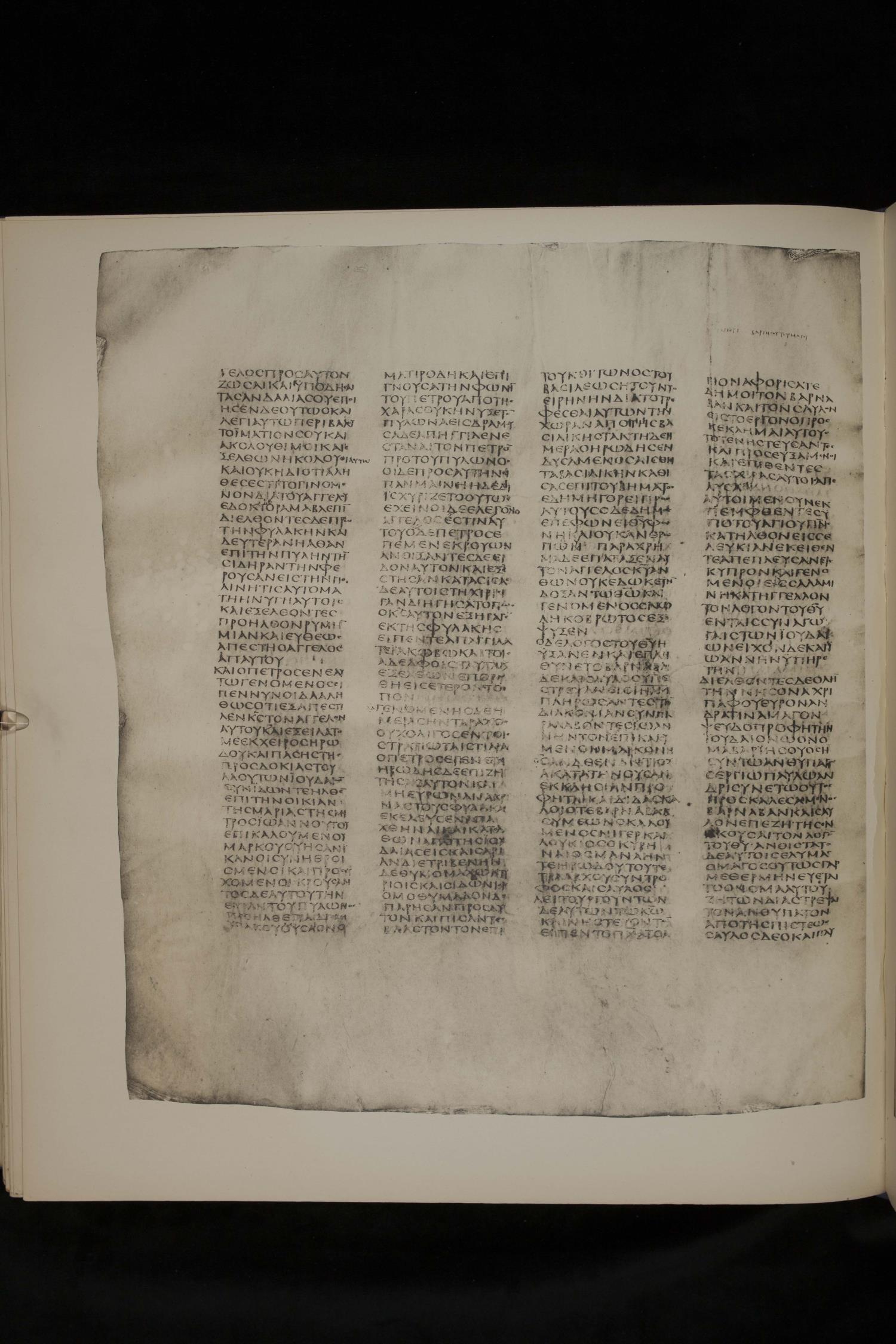 Codex Sinaiticus ? is a fourth-century manuscript of the Greek Old Testament, the New Testament, the Epistle of Barnabas, and the Shepherd of Hermas on parchment; The facsimile images are from the J. T. and Zelma Luther Archives, A. Webb Roberts Library, Southwestern Baptist Theological Seminary. For more recent digital images, please visit the Codex Sinaiticus Project