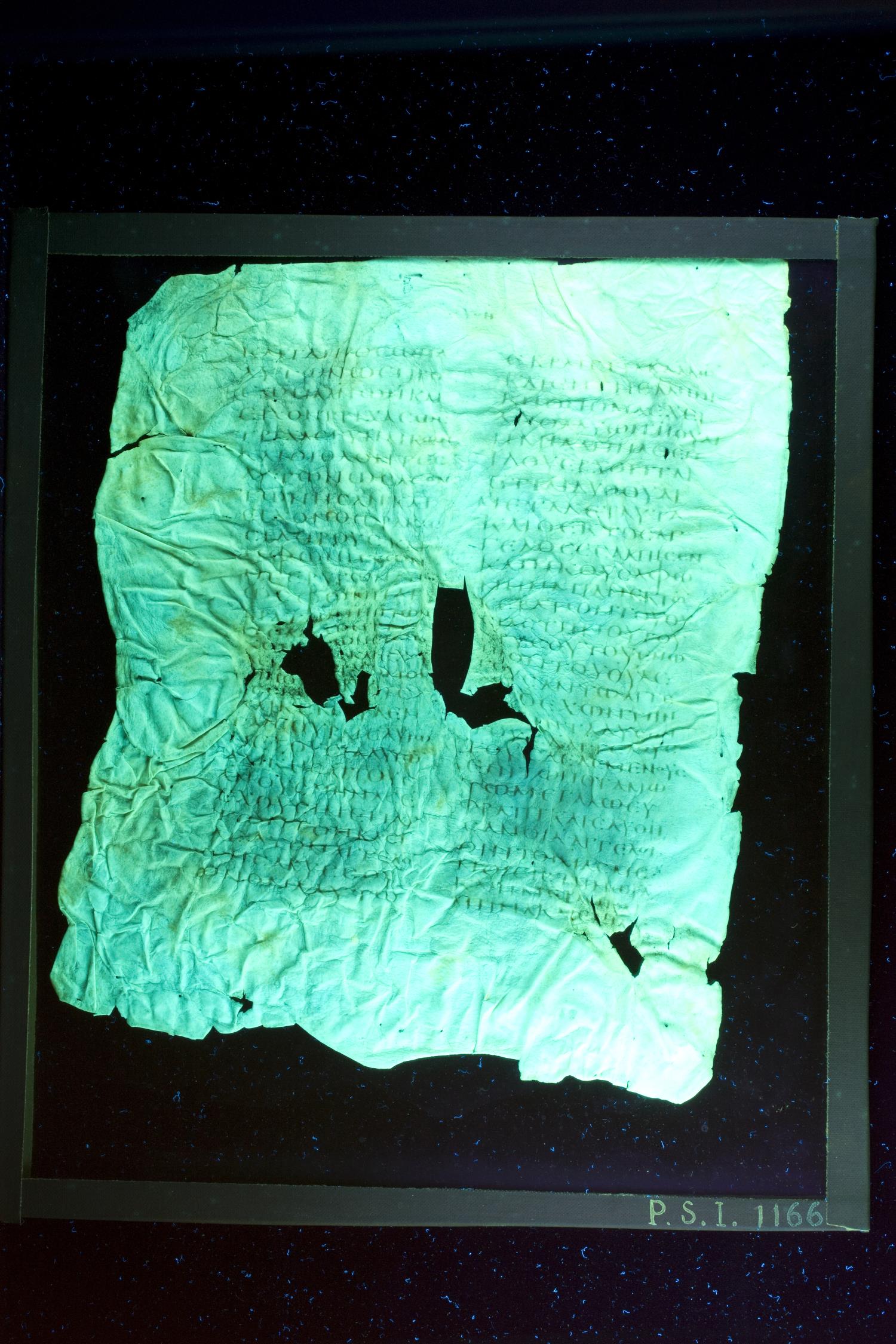 Fourth century manuscript of Revelation on parchment; 1 leaf, 2 columns, 29 lines per column. By agreement with the owners of the manuscript, the images posted online are 100dpi. For recent digital images, visit PSI online.