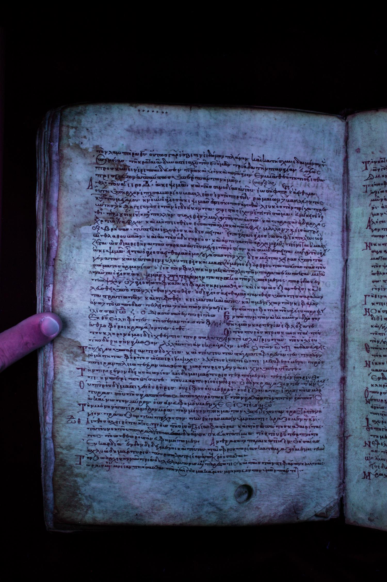 Majuscule Apostolos and Paul manuscript on parchment; palimpsest, 8 leaves, 2 columns, 29–32 lines per column.