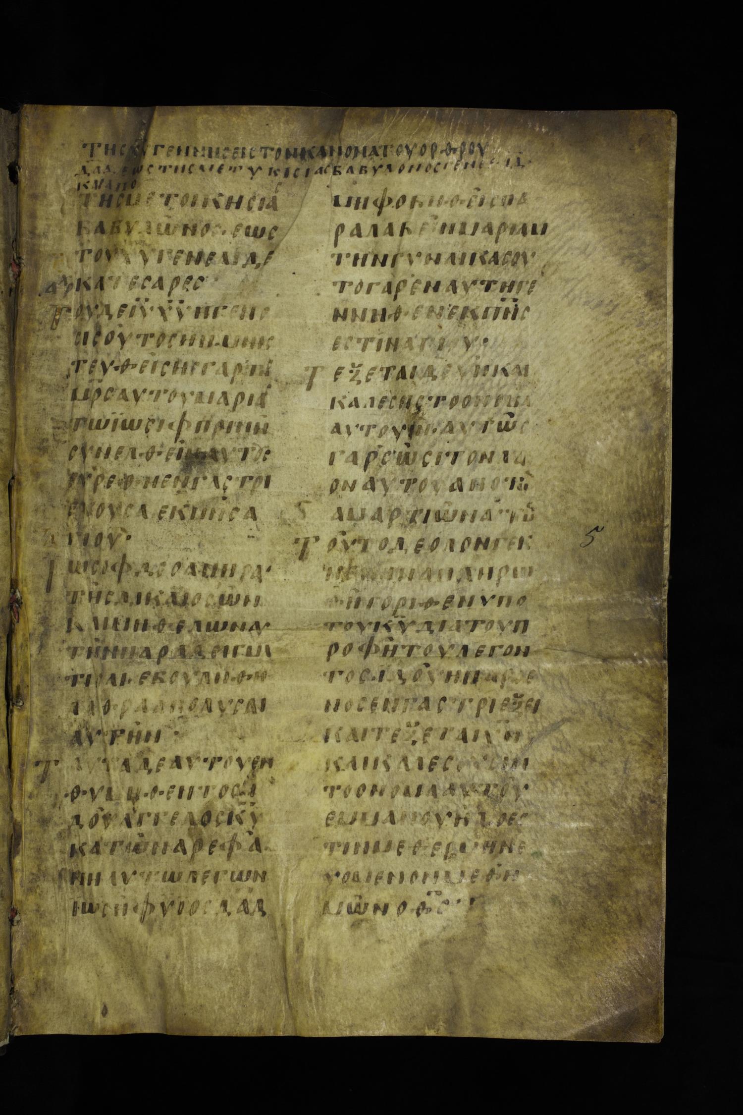 Ninth century majuscule of the Gospels on parchment; 254 leaves, 2 columns, 24-31 lines per column.