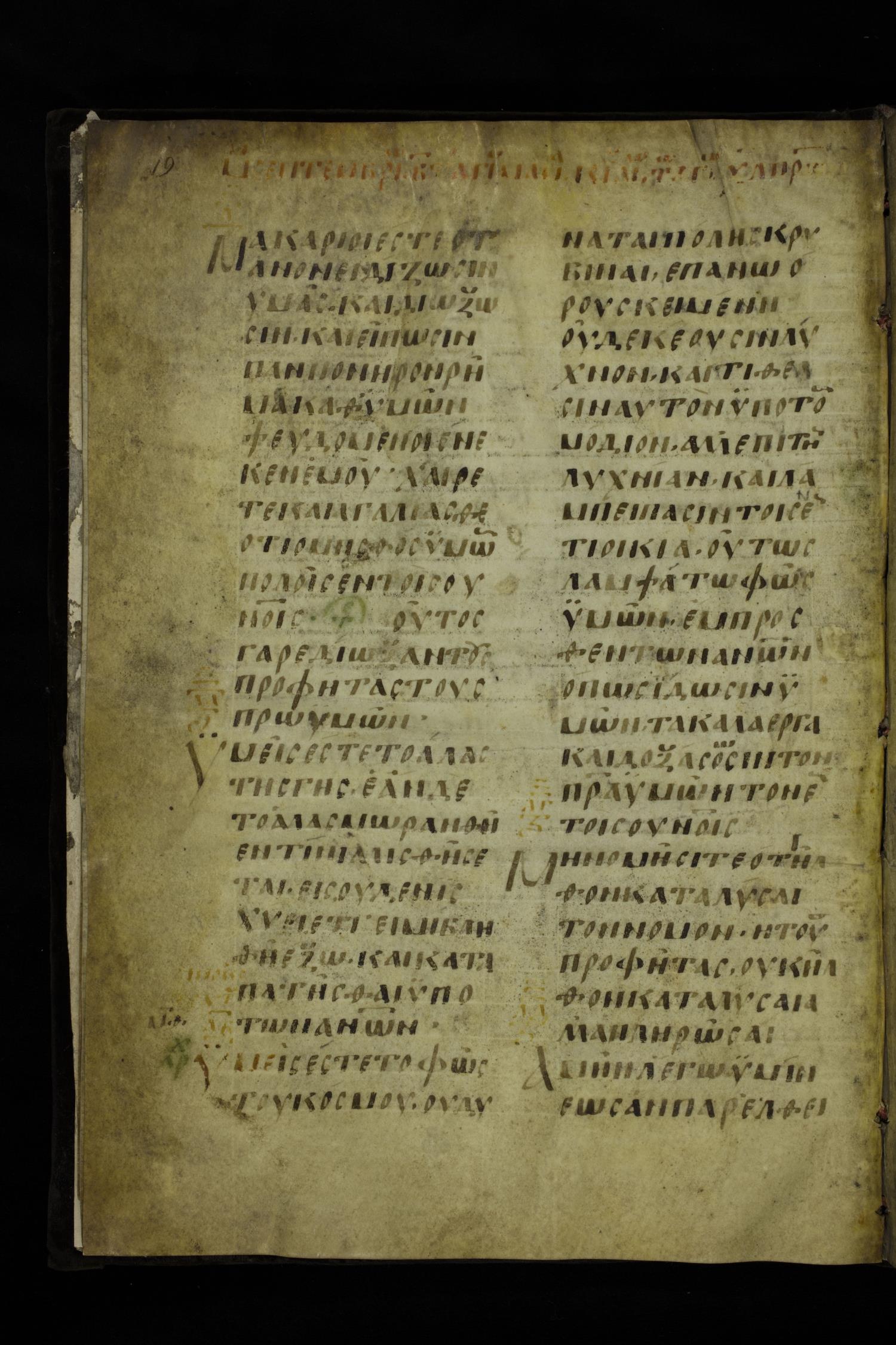 Ninth century majuscule of the Gospels on parchment; 254 leaves, 2 columns, 24-31 lines per column.