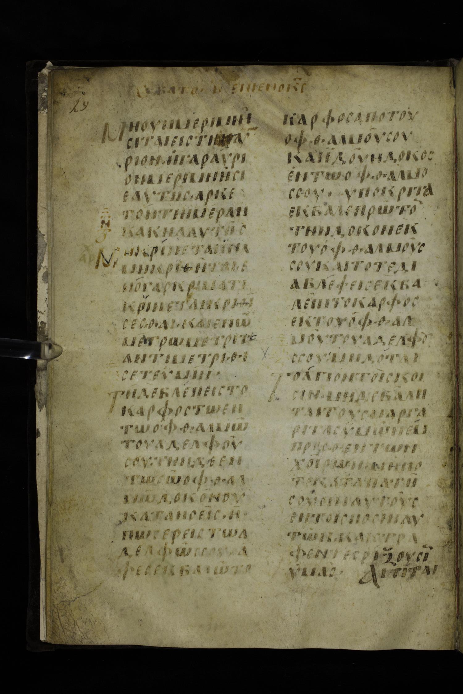 Ninth century majuscule of the Gospels on parchment; 254 leaves, 2 columns, 24-31 lines per column.
