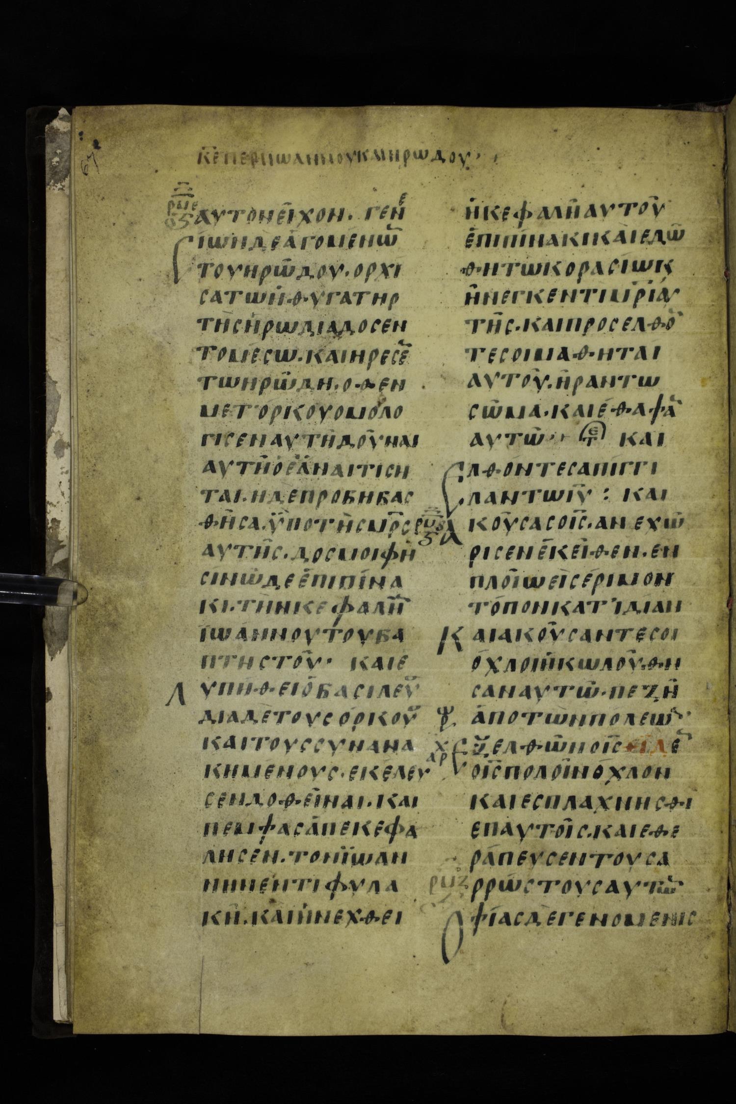 Ninth century majuscule of the Gospels on parchment; 254 leaves, 2 columns, 24-31 lines per column.