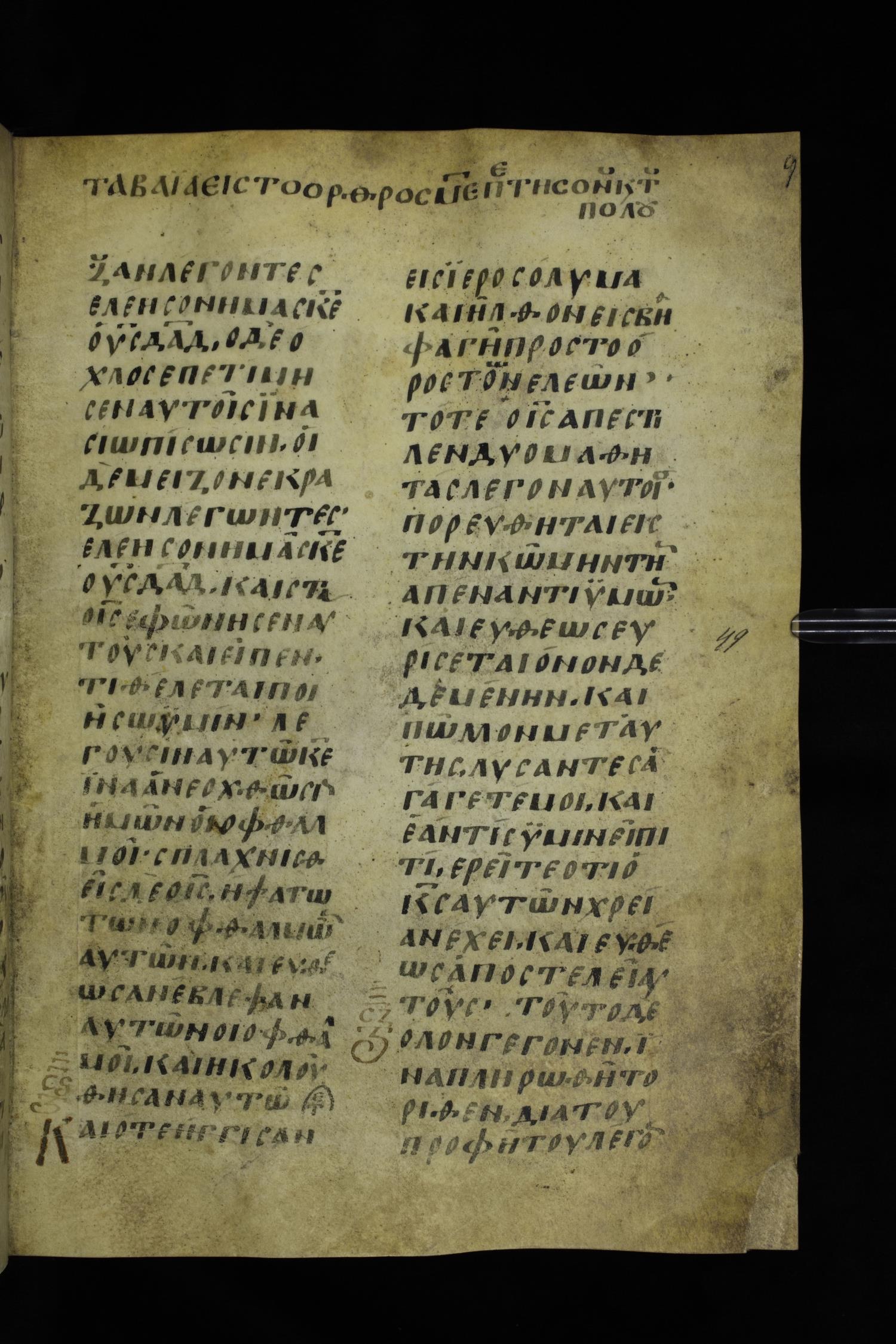 Ninth century majuscule of the Gospels on parchment; 254 leaves, 2 columns, 24-31 lines per column.