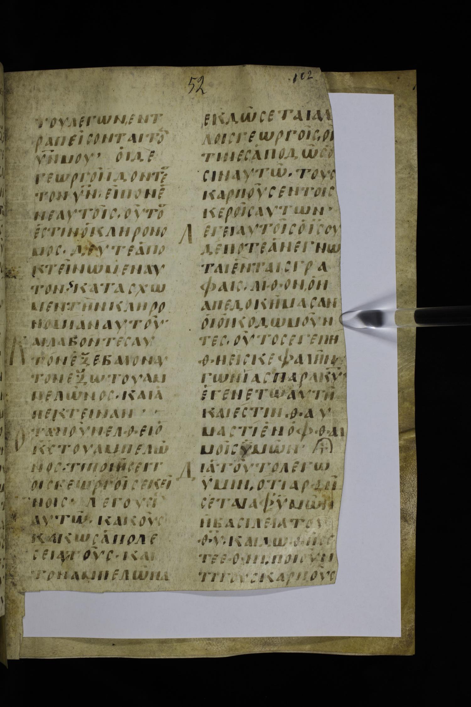 Ninth century majuscule of the Gospels on parchment; 254 leaves, 2 columns, 24-31 lines per column.
