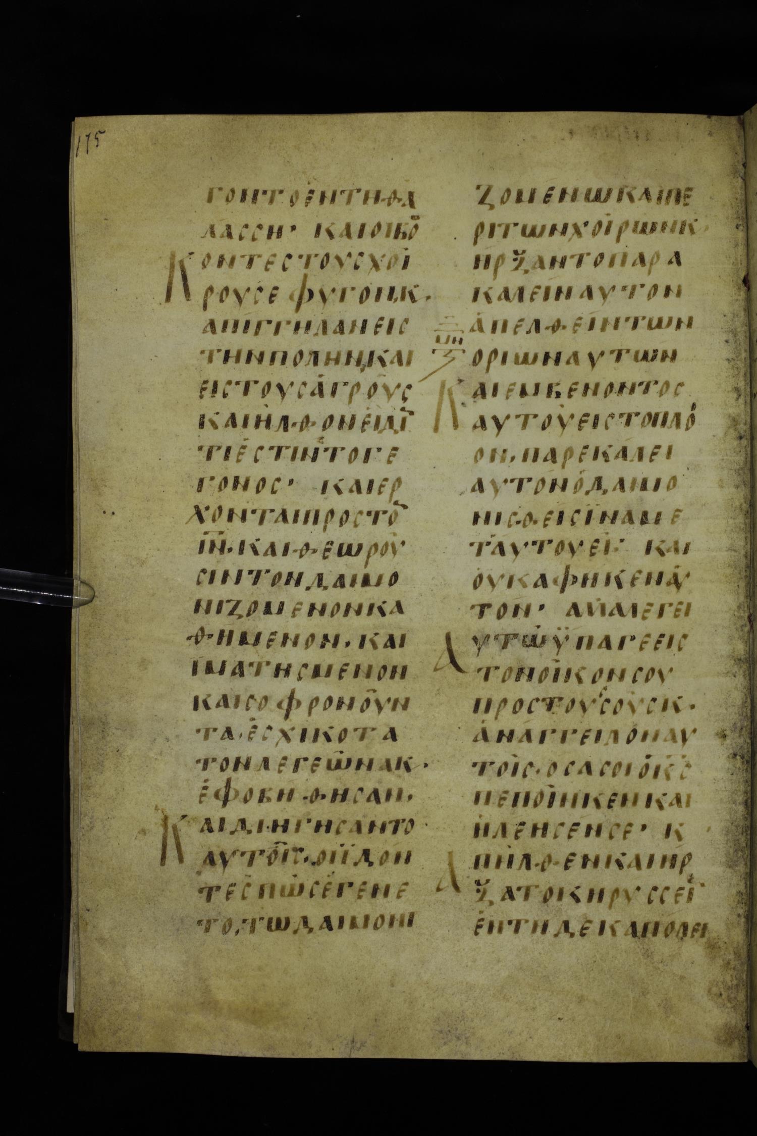 Ninth century majuscule of the Gospels on parchment; 254 leaves, 2 columns, 24-31 lines per column.
