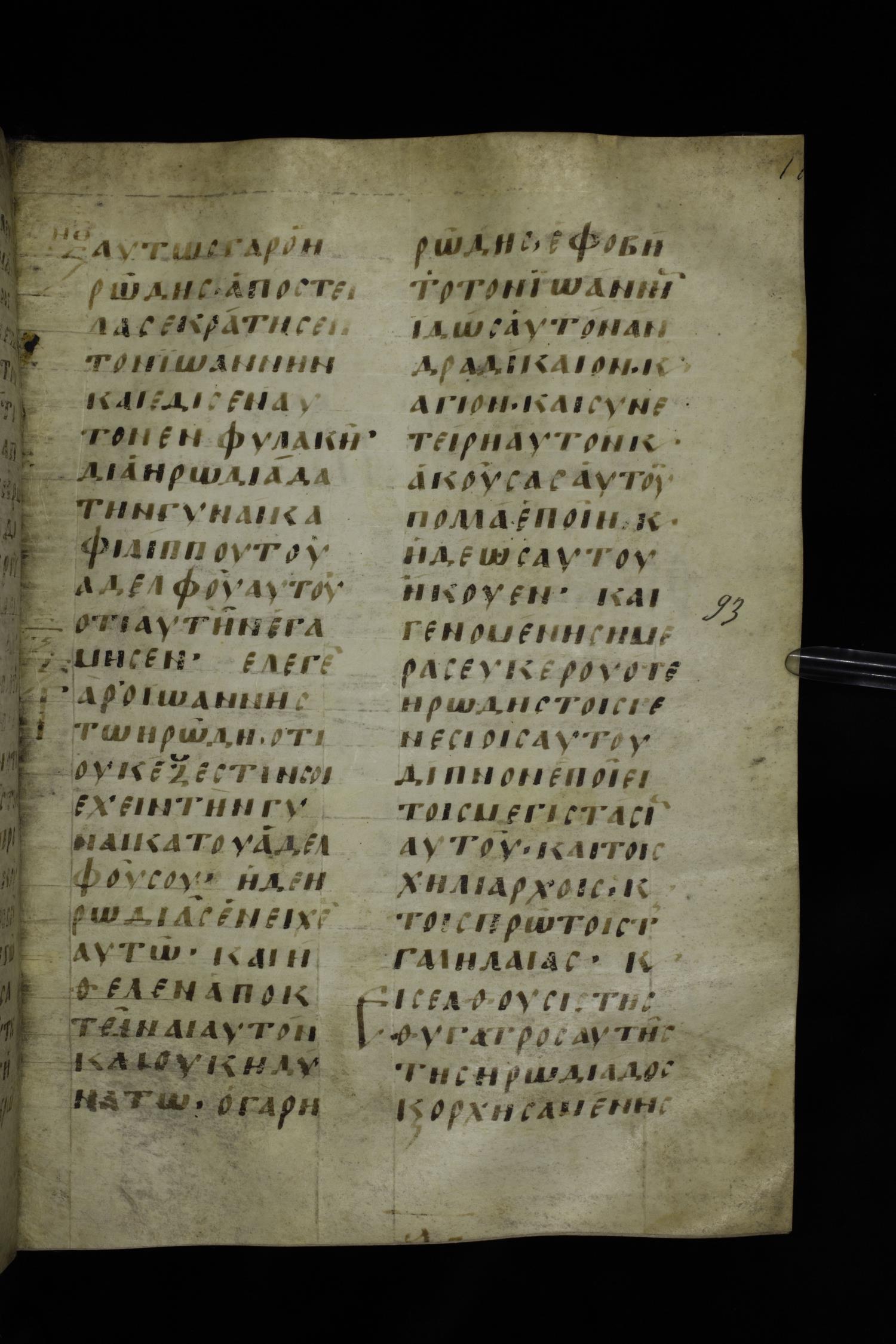 Ninth century majuscule of the Gospels on parchment; 254 leaves, 2 columns, 24-31 lines per column.
