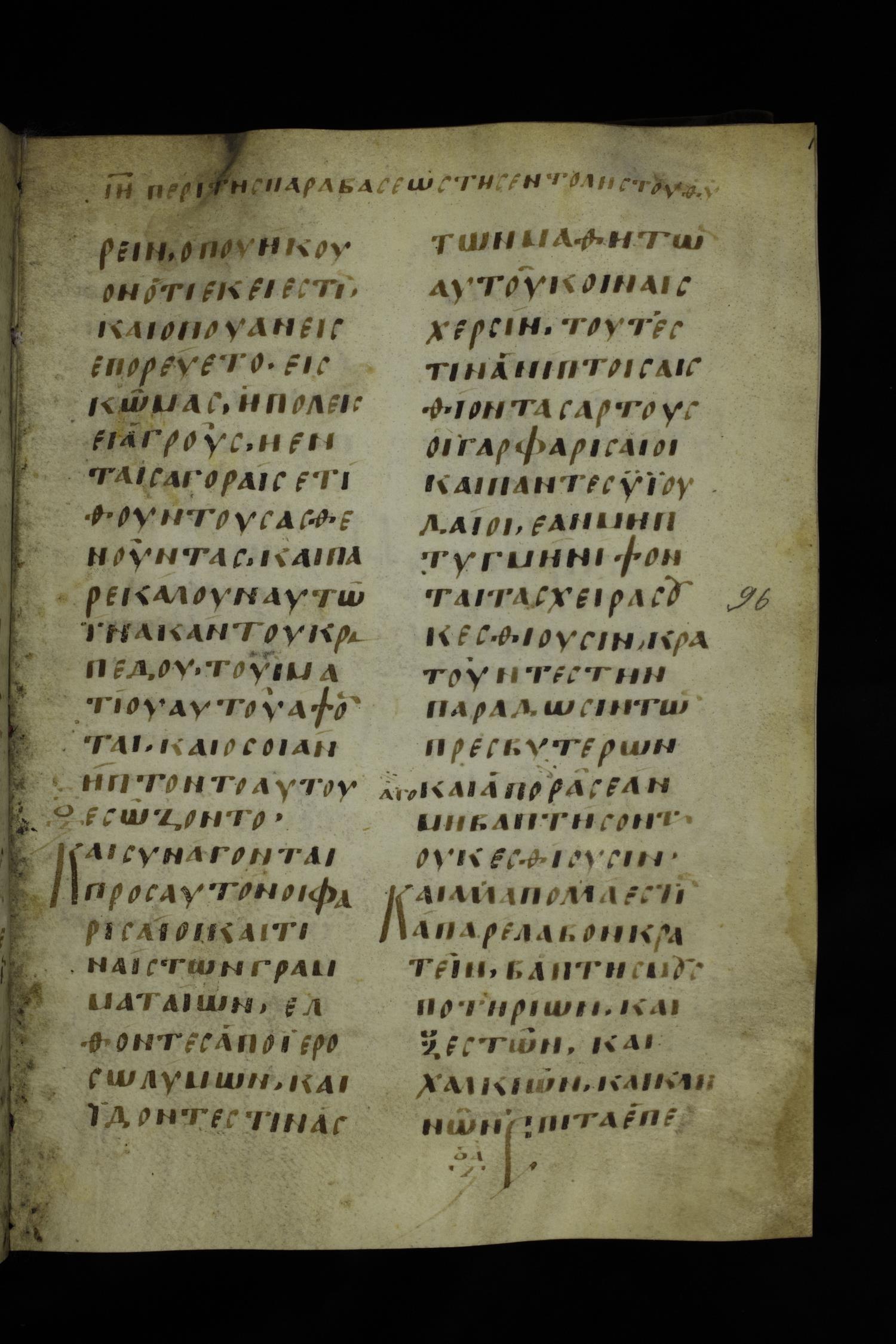 Ninth century majuscule of the Gospels on parchment; 254 leaves, 2 columns, 24-31 lines per column.