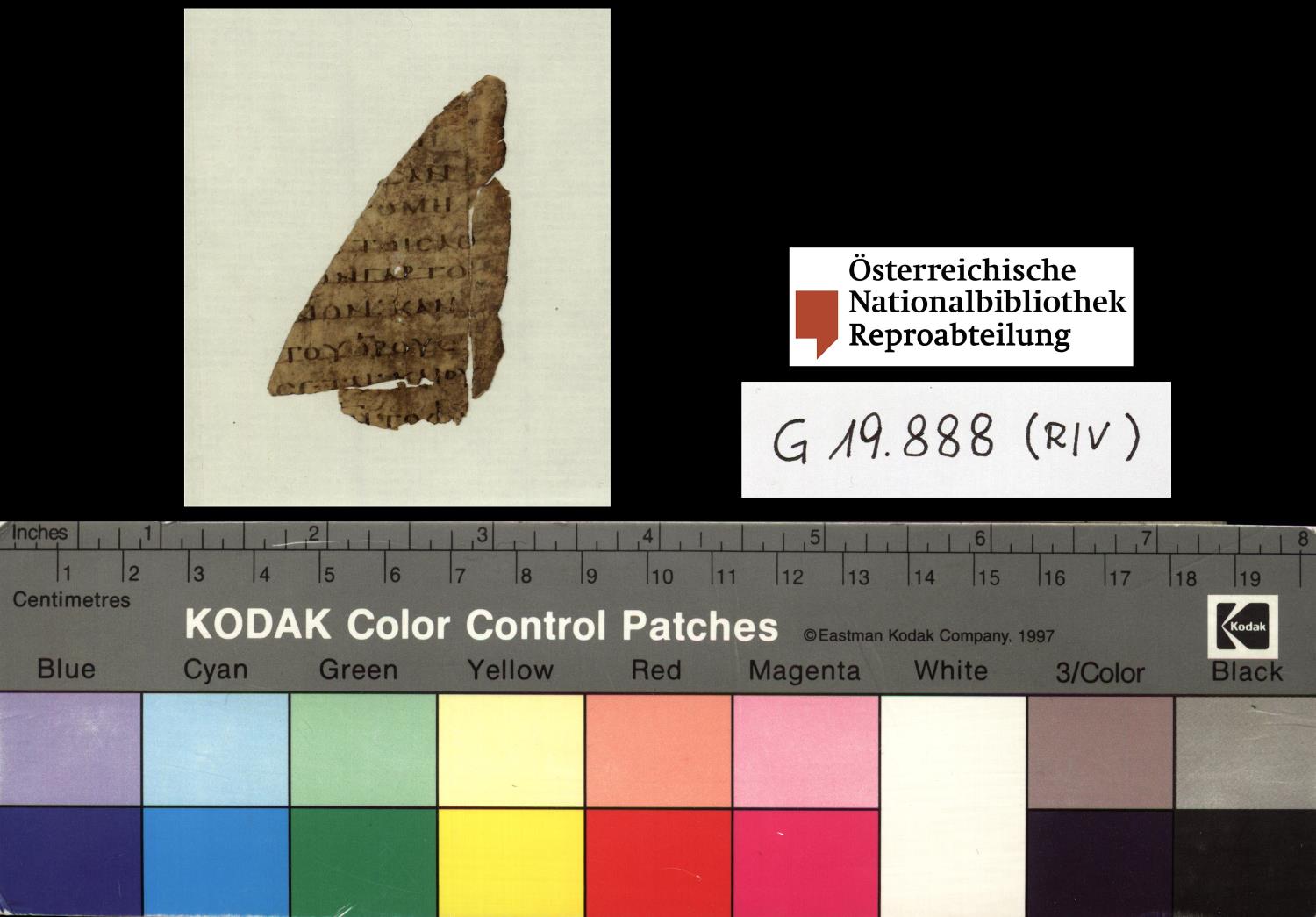 Fourth century majuscule of Paul on parchment; 1 fragment, 1 column, 17 lines per column. These images are made available online by the institution. For recent images, visit Österreichische Nationalbibliothek.
