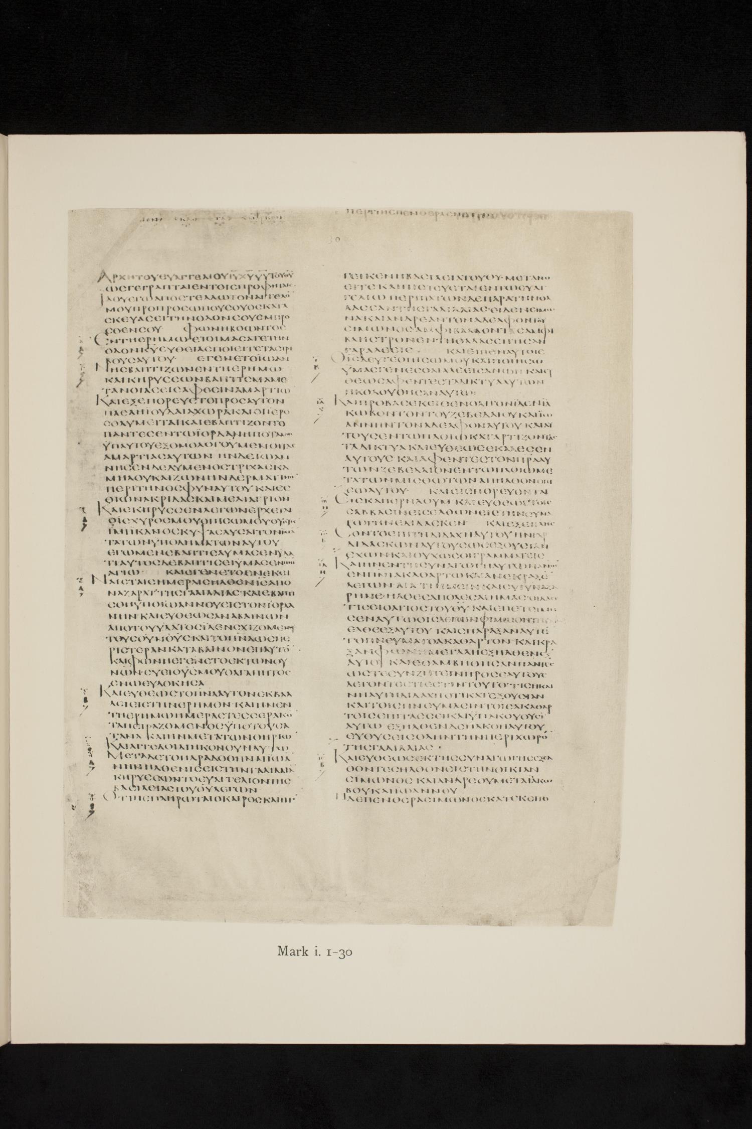 Codex Alexandrinus is a fifth century manuscript of the Greek Old Testament, the New Testament, and the Clementine Epistles on parchment. Images are from the 1879–1883 and 1909 full-sized black and white facsimiles produced by the British Museum. For more recent images, please visit the British Museum