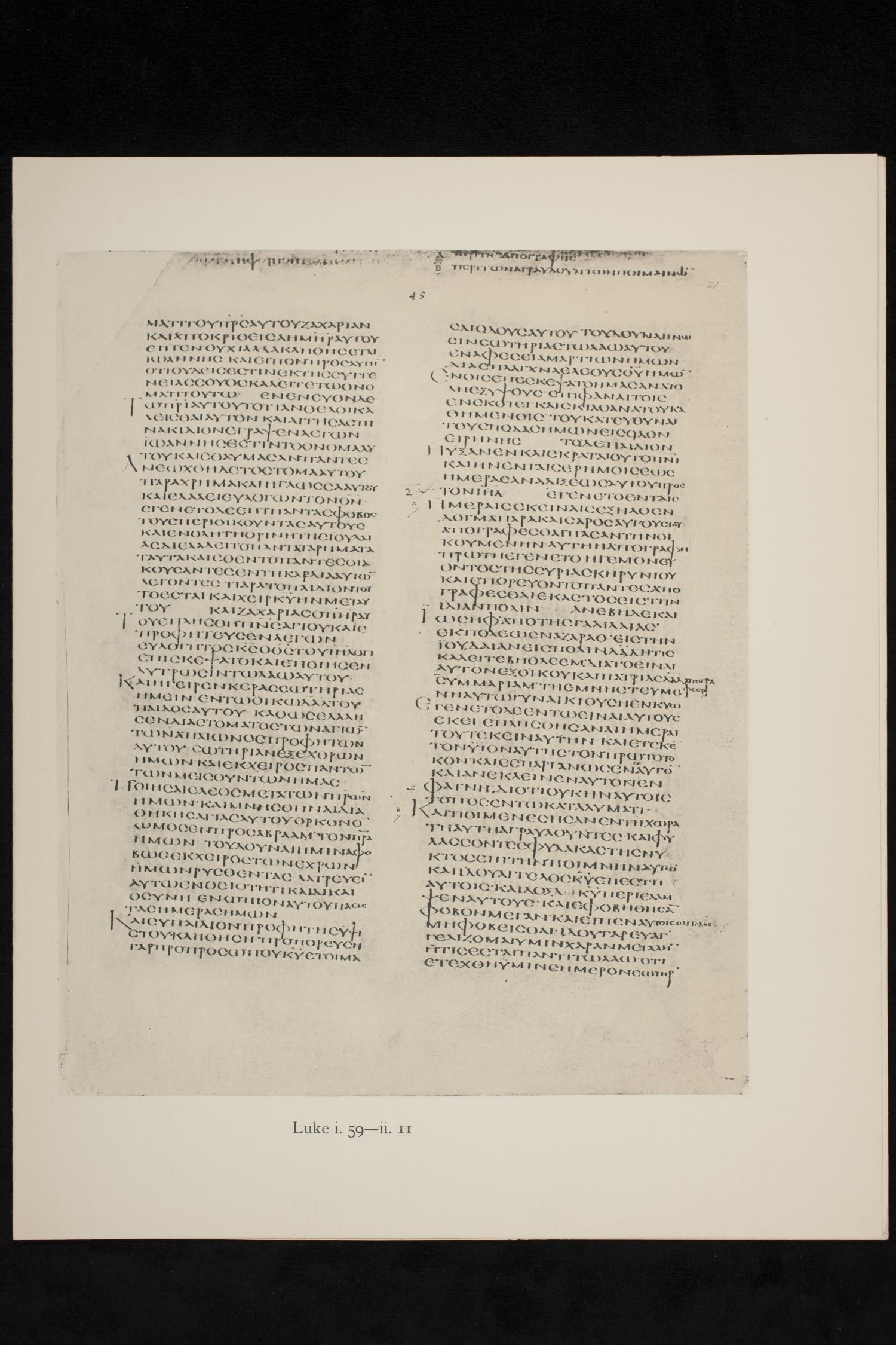 Codex Alexandrinus is a fifth century manuscript of the Greek Old Testament, the New Testament, and the Clementine Epistles on parchment. Images are from the 1879–1883 and 1909 full-sized black and white facsimiles produced by the British Museum. For more recent images, please visit the British Museum