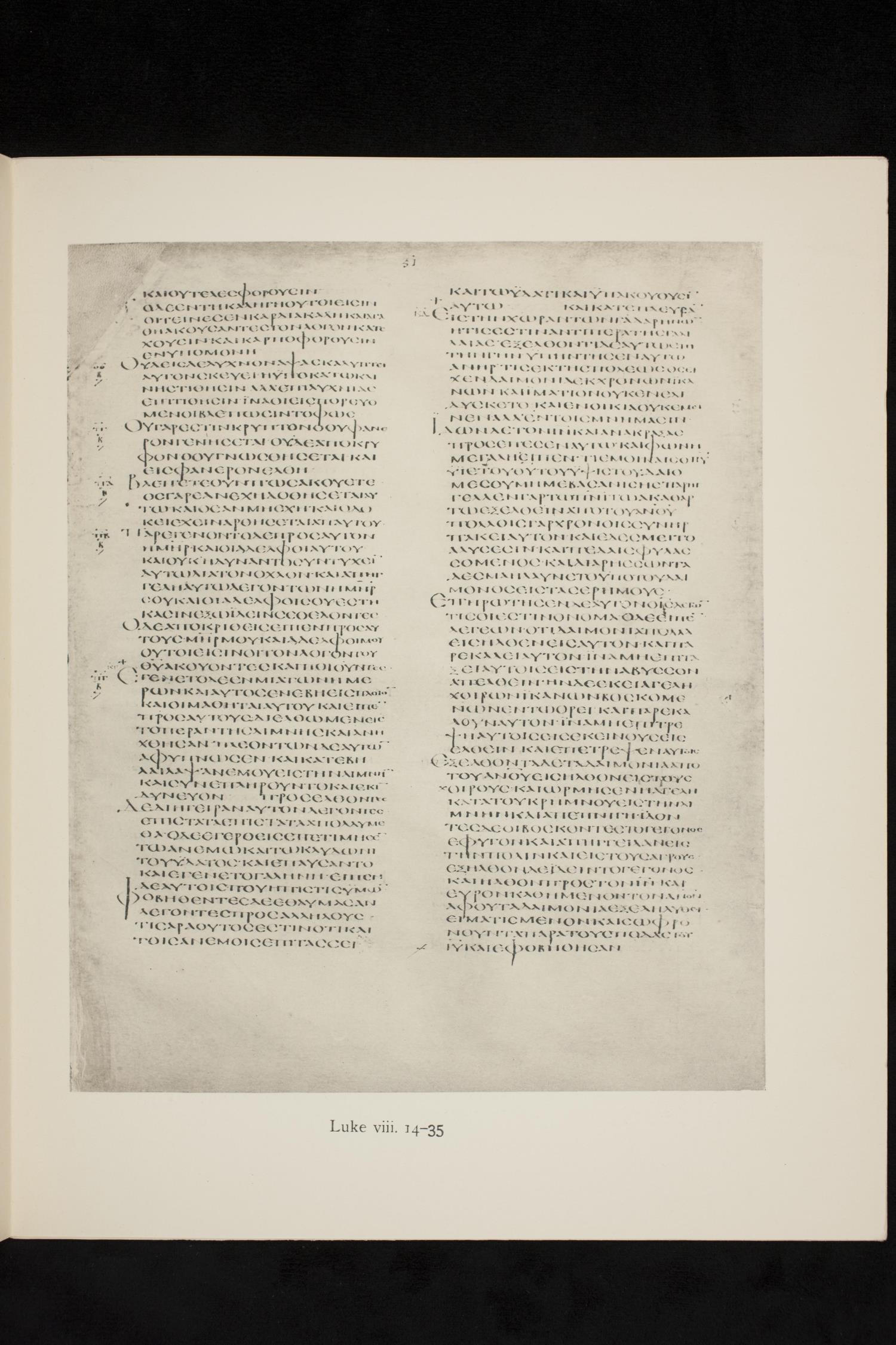 Codex Alexandrinus is a fifth century manuscript of the Greek Old Testament, the New Testament, and the Clementine Epistles on parchment. Images are from the 1879–1883 and 1909 full-sized black and white facsimiles produced by the British Museum. For more recent images, please visit the British Museum