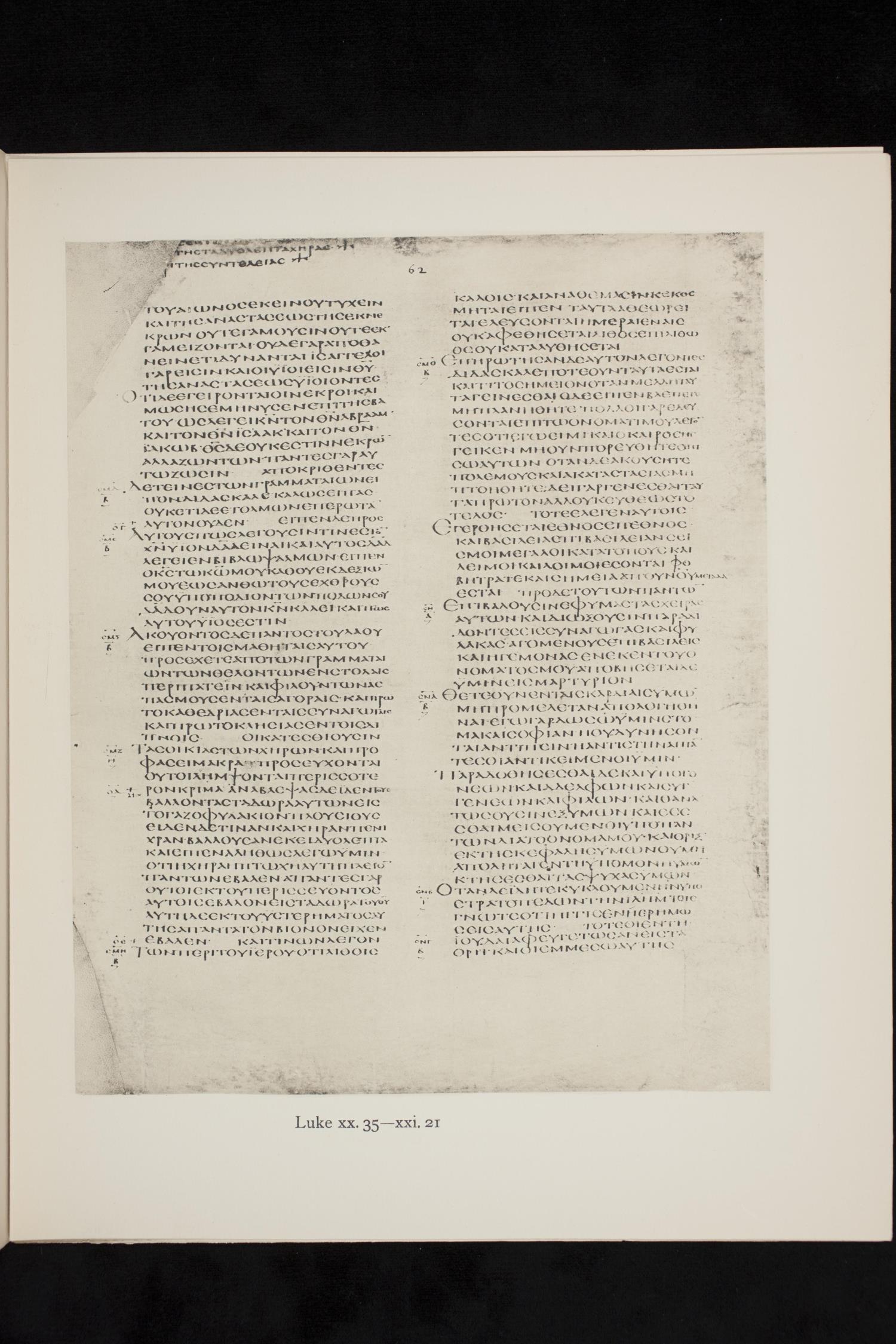 Codex Alexandrinus is a fifth century manuscript of the Greek Old Testament, the New Testament, and the Clementine Epistles on parchment. Images are from the 1879–1883 and 1909 full-sized black and white facsimiles produced by the British Museum. For more recent images, please visit the British Museum