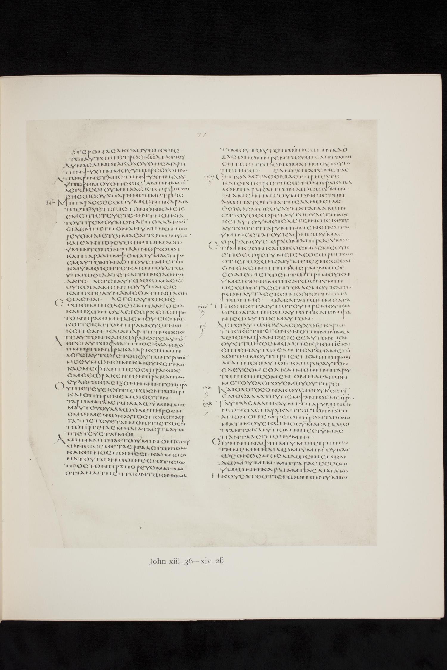 Codex Alexandrinus is a fifth century manuscript of the Greek Old Testament, the New Testament, and the Clementine Epistles on parchment. Images are from the 1879–1883 and 1909 full-sized black and white facsimiles produced by the British Museum. For more recent images, please visit the British Museum