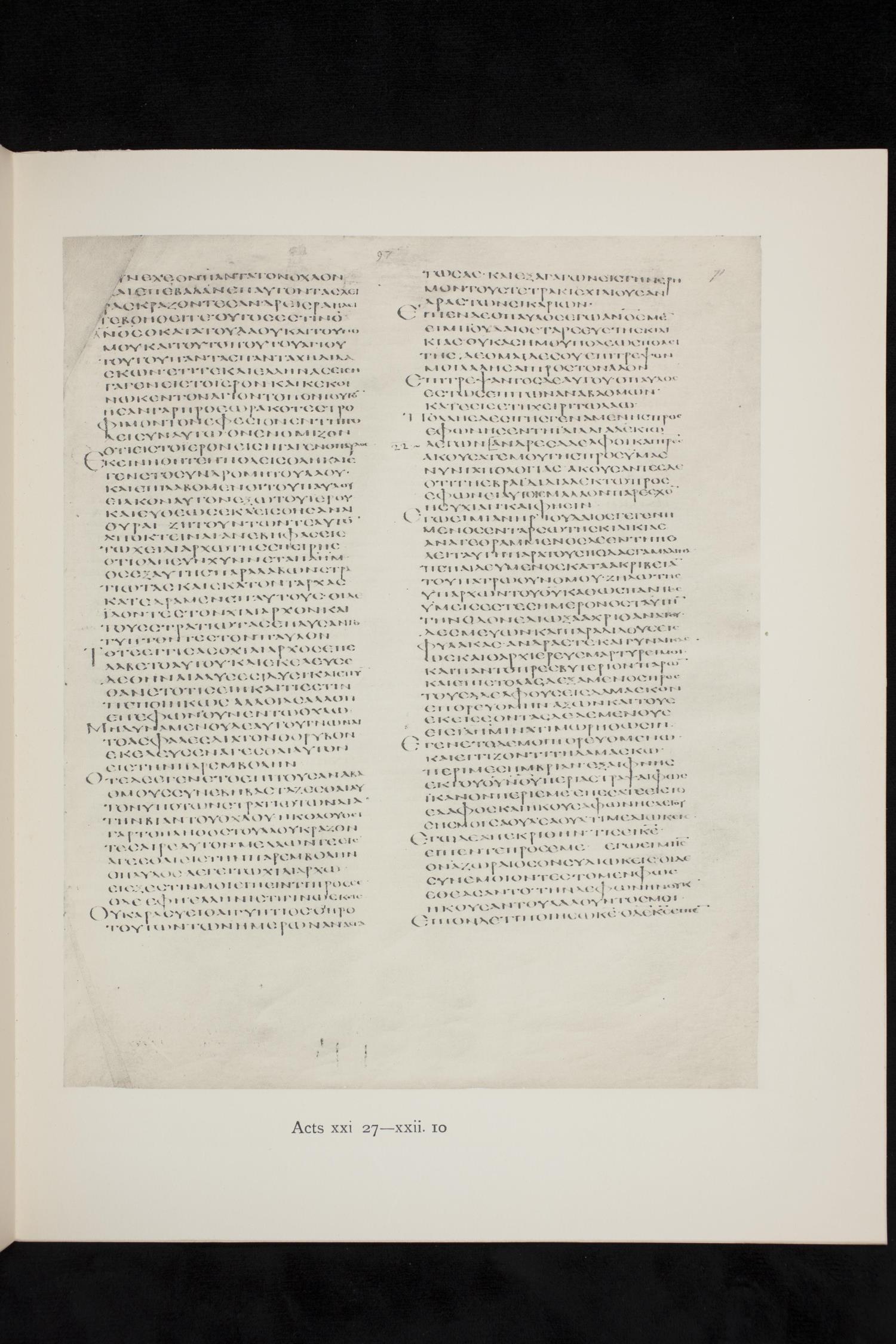 Codex Alexandrinus is a fifth century manuscript of the Greek Old Testament, the New Testament, and the Clementine Epistles on parchment. Images are from the 1879–1883 and 1909 full-sized black and white facsimiles produced by the British Museum. For more recent images, please visit the British Museum