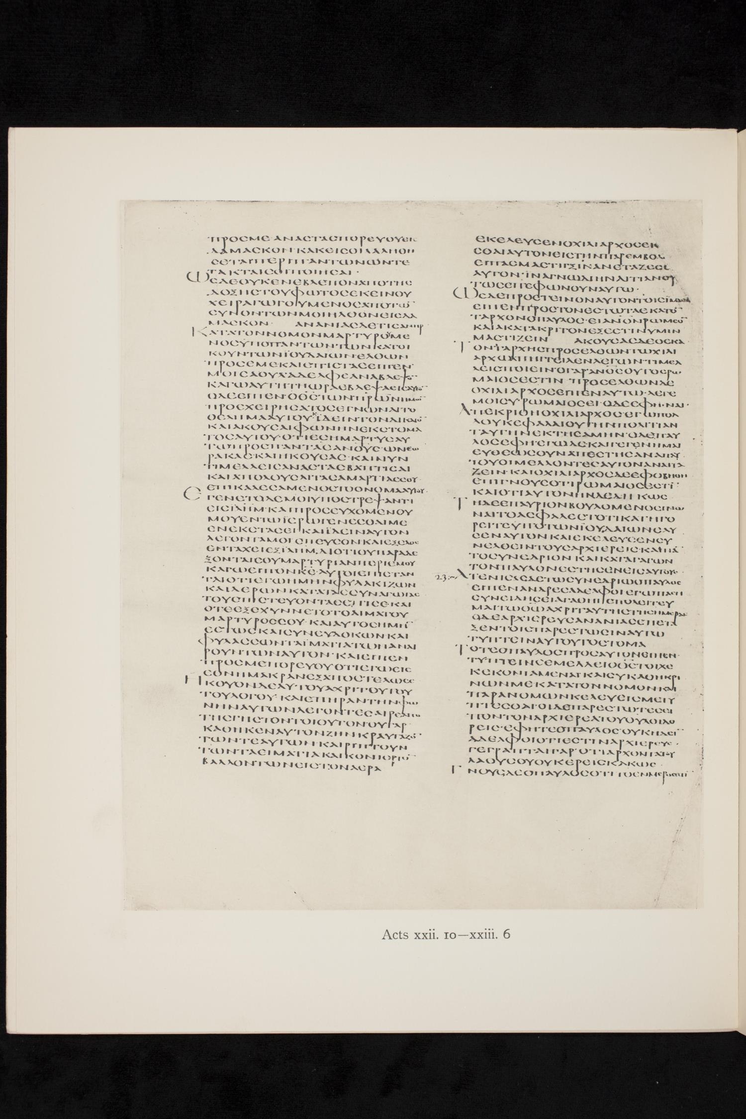 ὡς δὲ προέτειναν αὐτὸν τοῖς ἱμᾶσιν εἶπεν πρὸς τὸν ἑστῶτα ἑκατόνταρχον ὁ Παῦλος Εἰ ἄνθρωπον Ῥωμαῖον καὶ ἀκατάκριτον ἔξεστιν ὑμῖν μαστίζειν;
