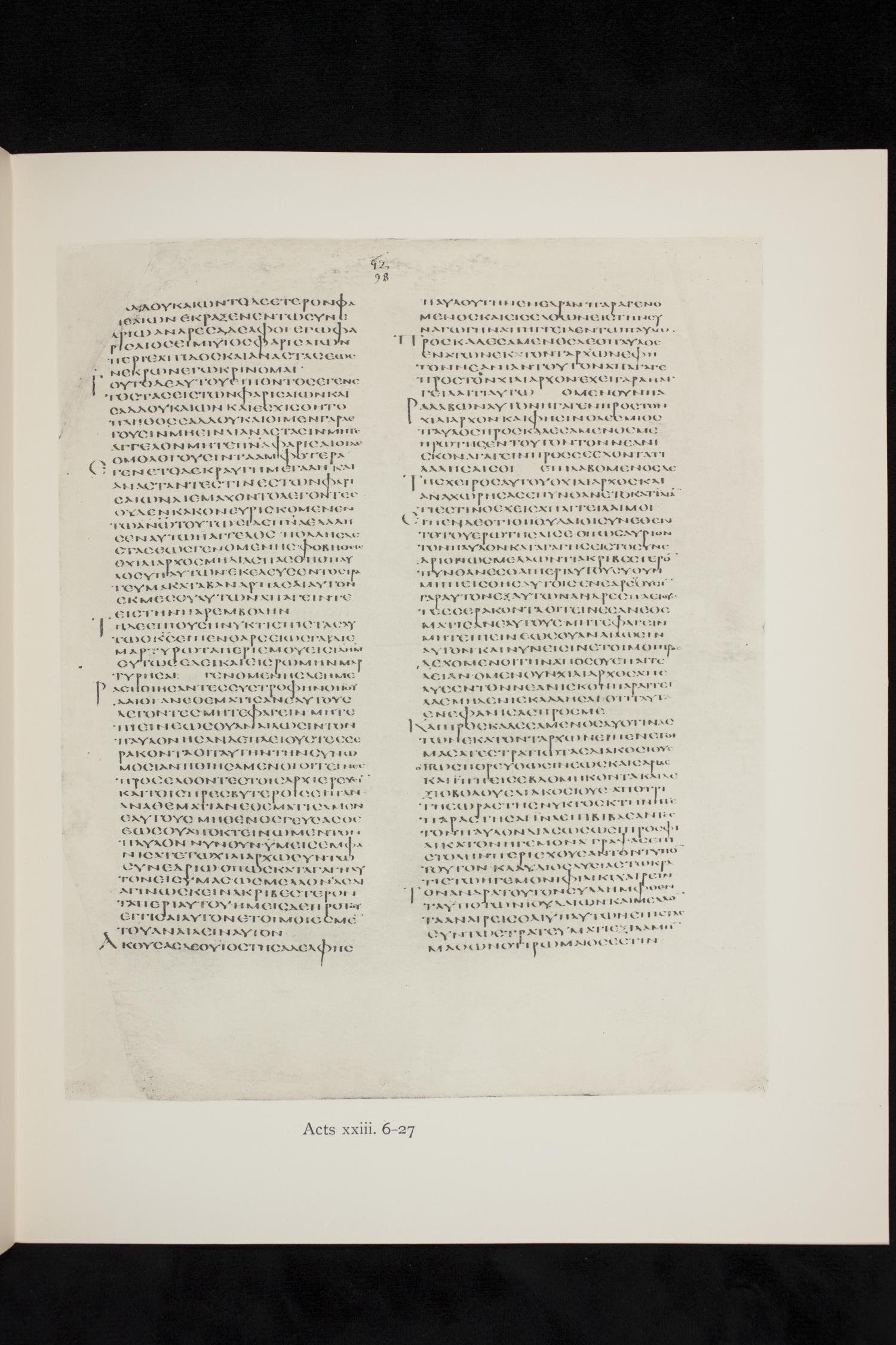 Codex Alexandrinus is a fifth century manuscript of the Greek Old Testament, the New Testament, and the Clementine Epistles on parchment. Images are from the 1879–1883 and 1909 full-sized black and white facsimiles produced by the British Museum. For more recent images, please visit the British Museum