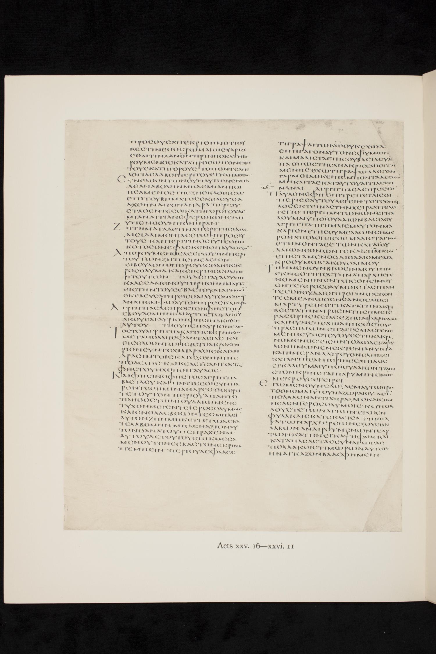 Codex Alexandrinus is a fifth century manuscript of the Greek Old Testament, the New Testament, and the Clementine Epistles on parchment. Images are from the 1879–1883 and 1909 full-sized black and white facsimiles produced by the British Museum. For more recent images, please visit the British Museum