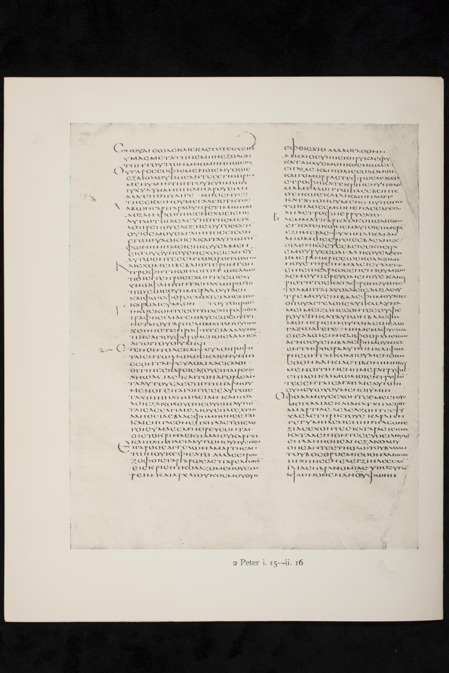 Codex Alexandrinus is a fifth century manuscript of the Greek Old Testament, the New Testament, and the Clementine Epistles on parchment. Images are from the 1879–1883 and 1909 full-sized black and white facsimiles produced by the British Museum. For more recent images, please visit the British Museum