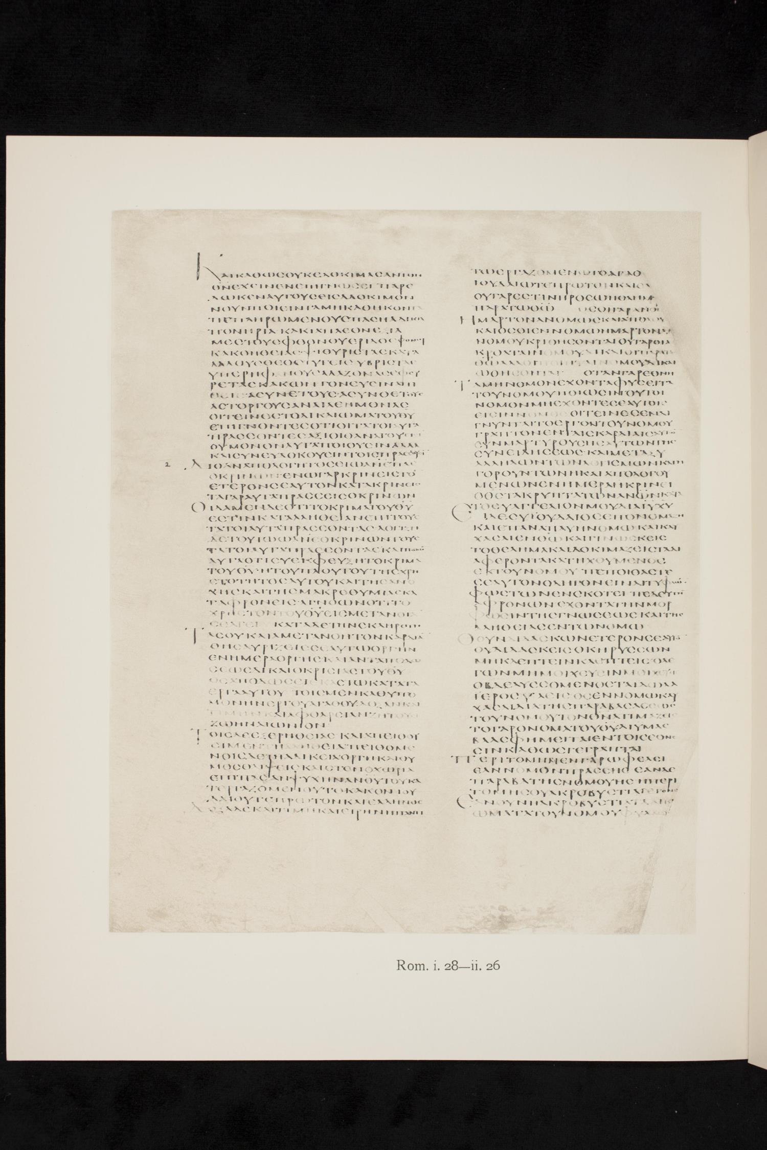 Codex Alexandrinus is a fifth century manuscript of the Greek Old Testament, the New Testament, and the Clementine Epistles on parchment. Images are from the 1879–1883 and 1909 full-sized black and white facsimiles produced by the British Museum. For more recent images, please visit the British Museum