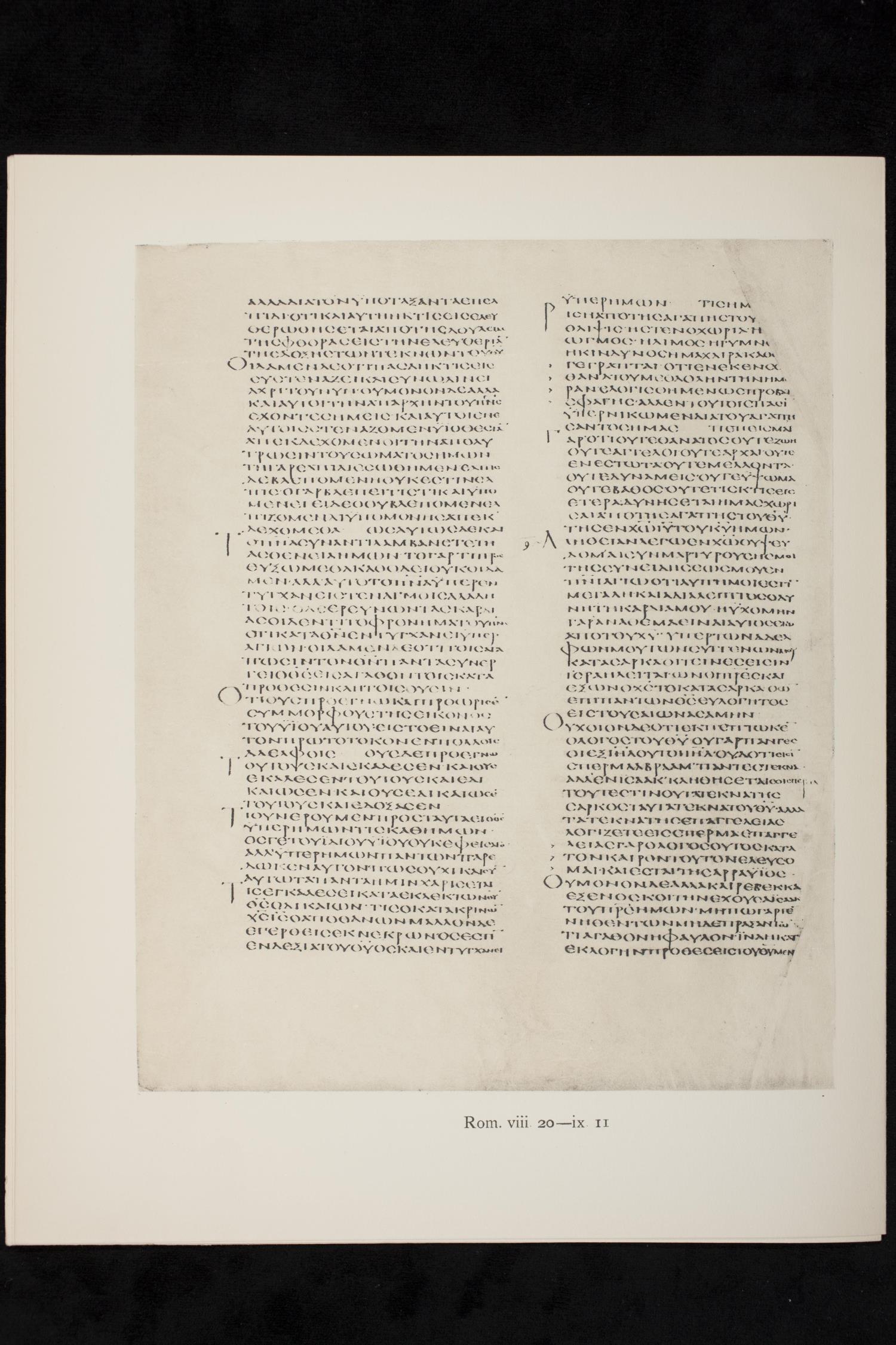 Codex Alexandrinus is a fifth century manuscript of the Greek Old Testament, the New Testament, and the Clementine Epistles on parchment. Images are from the 1879–1883 and 1909 full-sized black and white facsimiles produced by the British Museum. For more recent images, please visit the British Museum