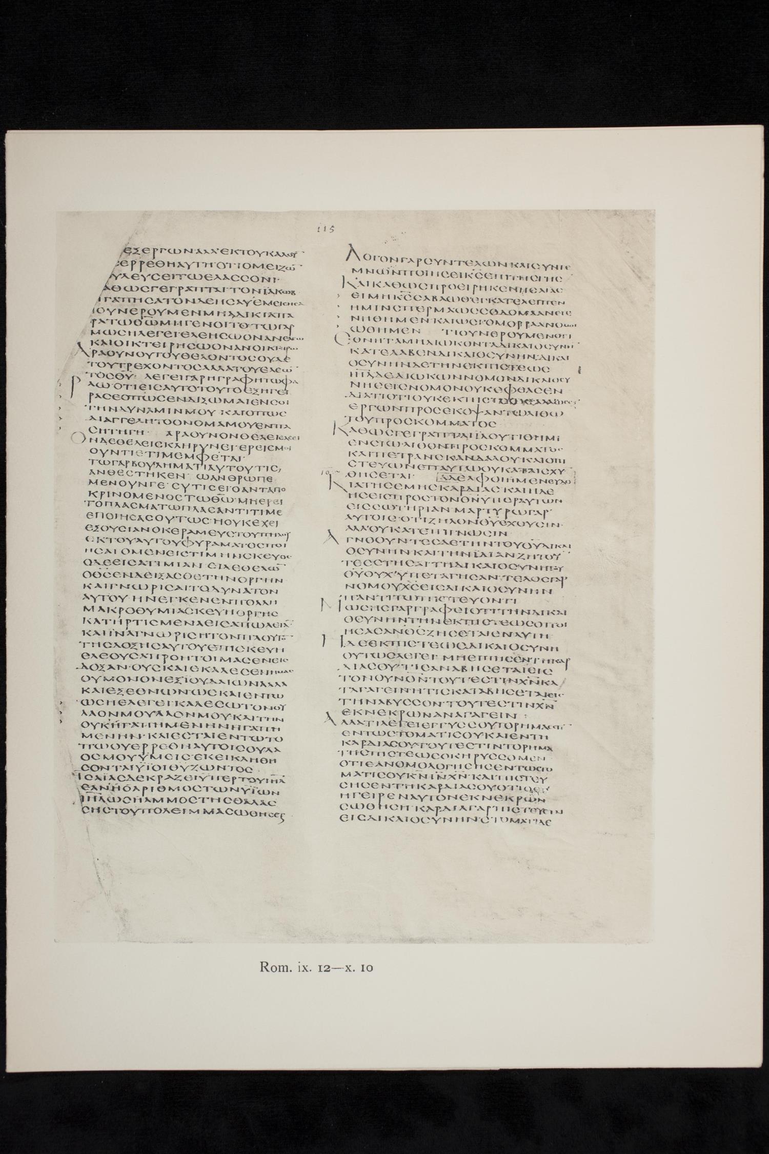 Codex Alexandrinus is a fifth century manuscript of the Greek Old Testament, the New Testament, and the Clementine Epistles on parchment. Images are from the 1879–1883 and 1909 full-sized black and white facsimiles produced by the British Museum. For more recent images, please visit the British Museum