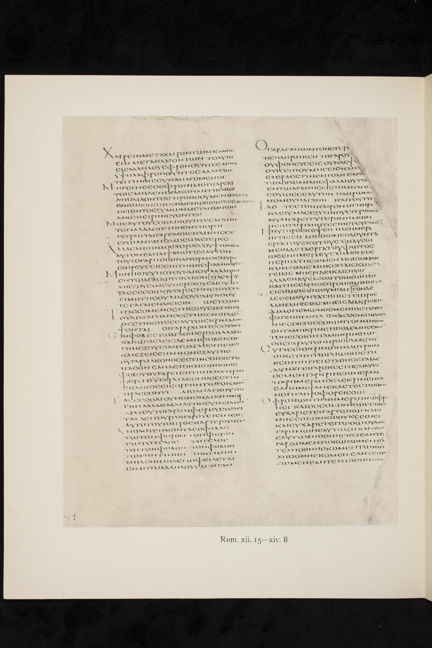 Codex Alexandrinus is a fifth century manuscript of the Greek Old Testament, the New Testament, and the Clementine Epistles on parchment. Images are from the 1879–1883 and 1909 full-sized black and white facsimiles produced by the British Museum. For more recent images, please visit the British Museum